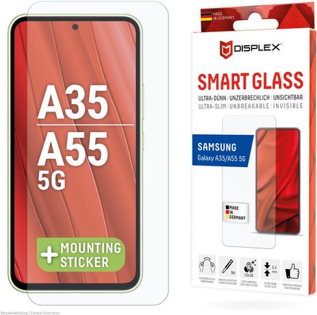 Displex Smart Glass (9H) für Samsung Galaxy A35/A55 5G - Montagesticker - unzerbrechlich - Galaxy A35/A55 5G - Schmutzabweisend - Kratzresistent - Schockresistent - Stoßfest - Transparent - 1 Stück(e) (01943)