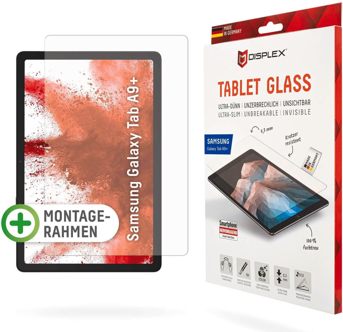 Displex Tablet Glass (9H) für Samsung Galaxy Tab A9+ - Eco-Montagerahmen L-Form - unzerbrechlich (01938)