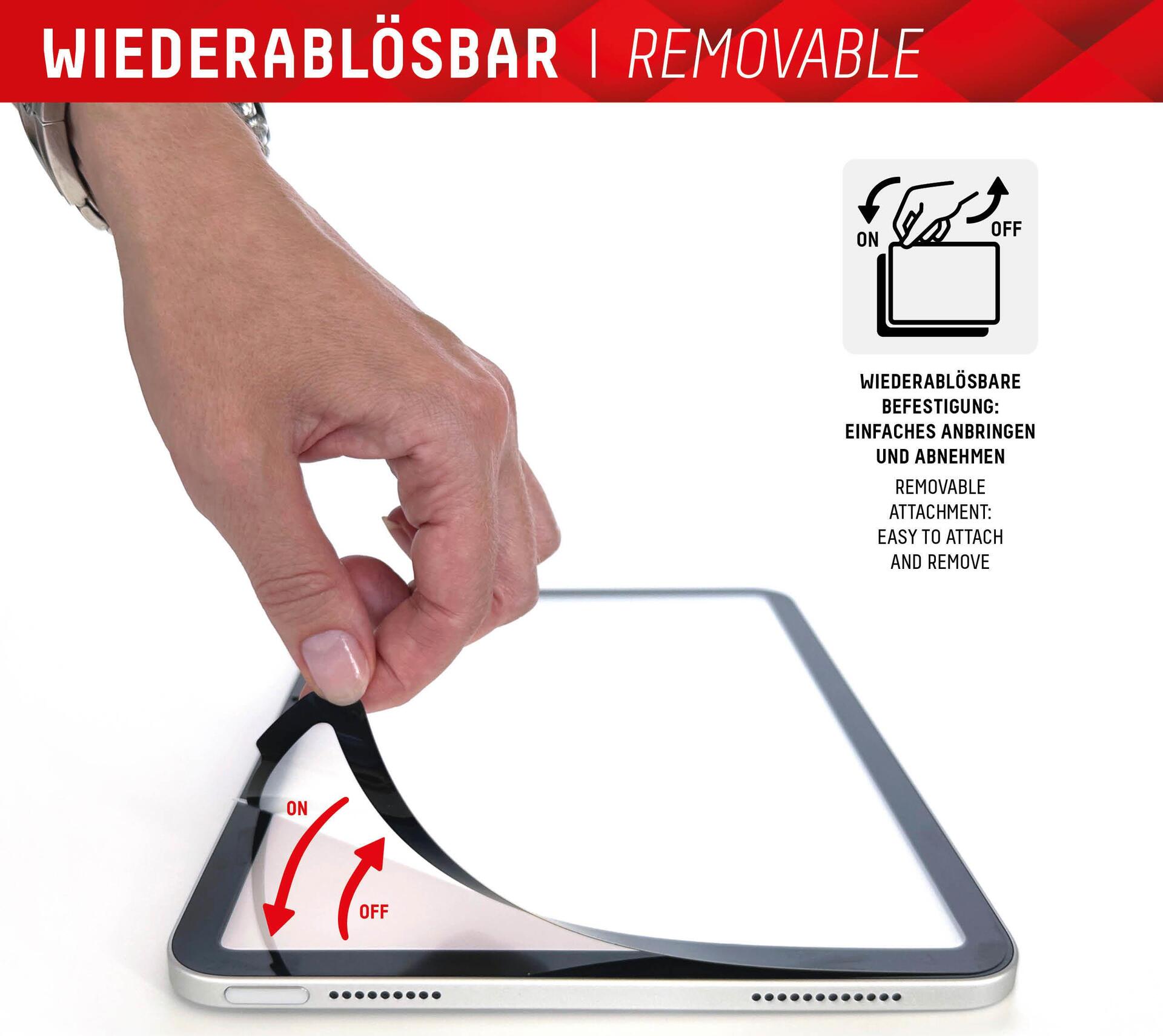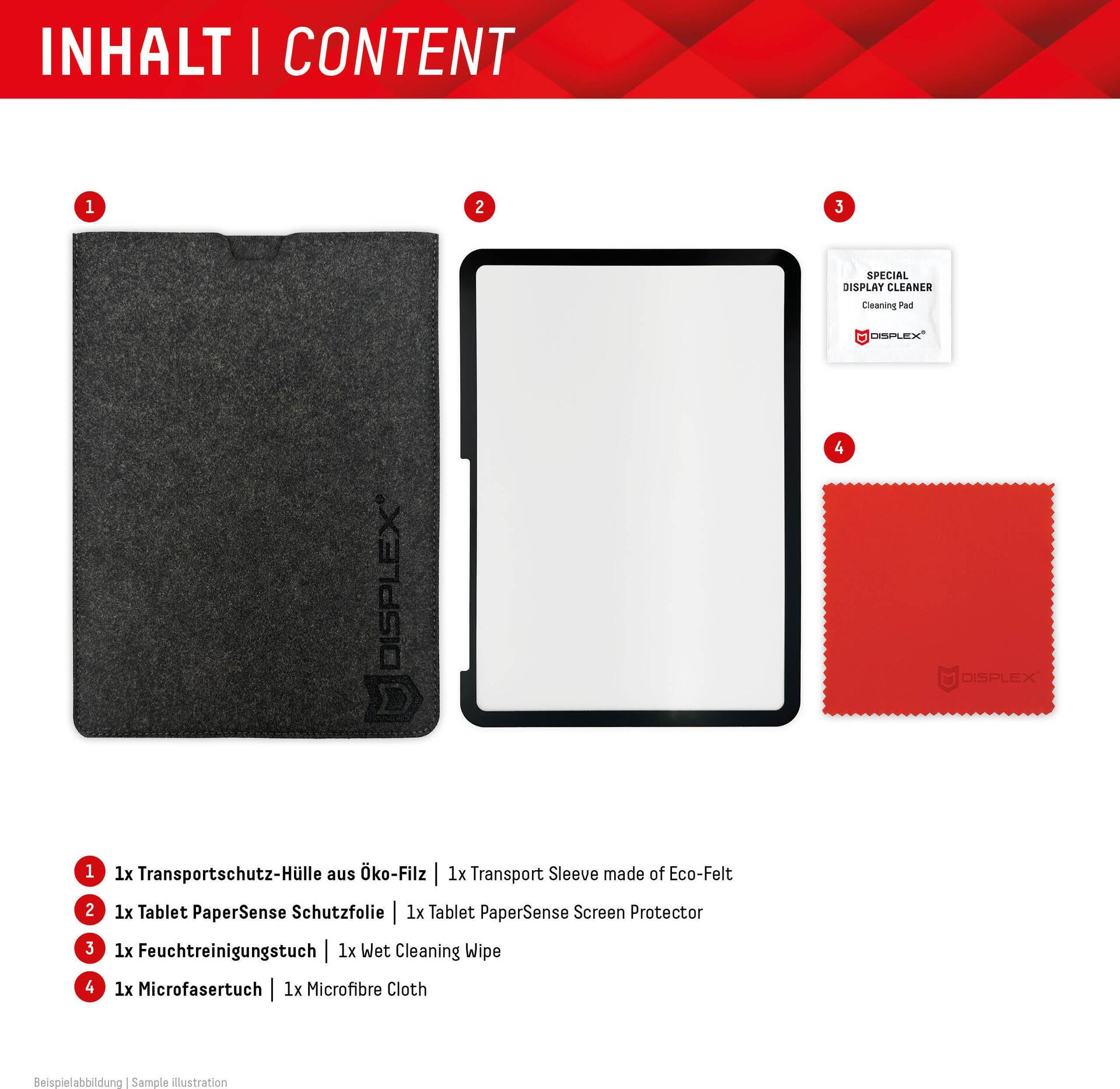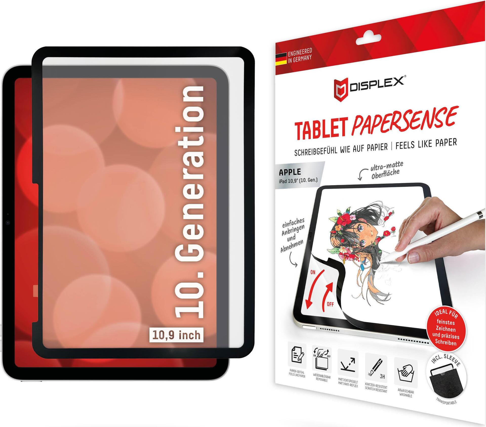 Displex TABLET PAPERSENSE für iPad 10,9'' (10. Gen.), wiederablösbare Schreibfolie und Zeichenfolie mit Paper Feeling. Displayschutzart: Papierähnliche Schutzfolie für den Bildschirm, Maximale Bildschirmgröße: 27,7 cm (10.9"), Oberflächenlackierung: Matt, Härte: 3H, Markenkompatibilität: Apple, Kompatibilität: iPad 10,9'' (10. Gen.). Menge pro Packung: 1 Stück(e) (01887)