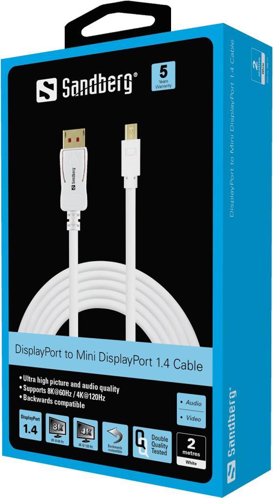 Sandberg - DisplayPort-Kabel - DisplayPort (M) bis Mini DisplayPort (M) - DisplayPort 1.4 - 2 m - 8K Unterstützung