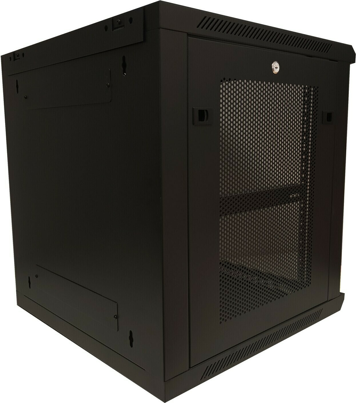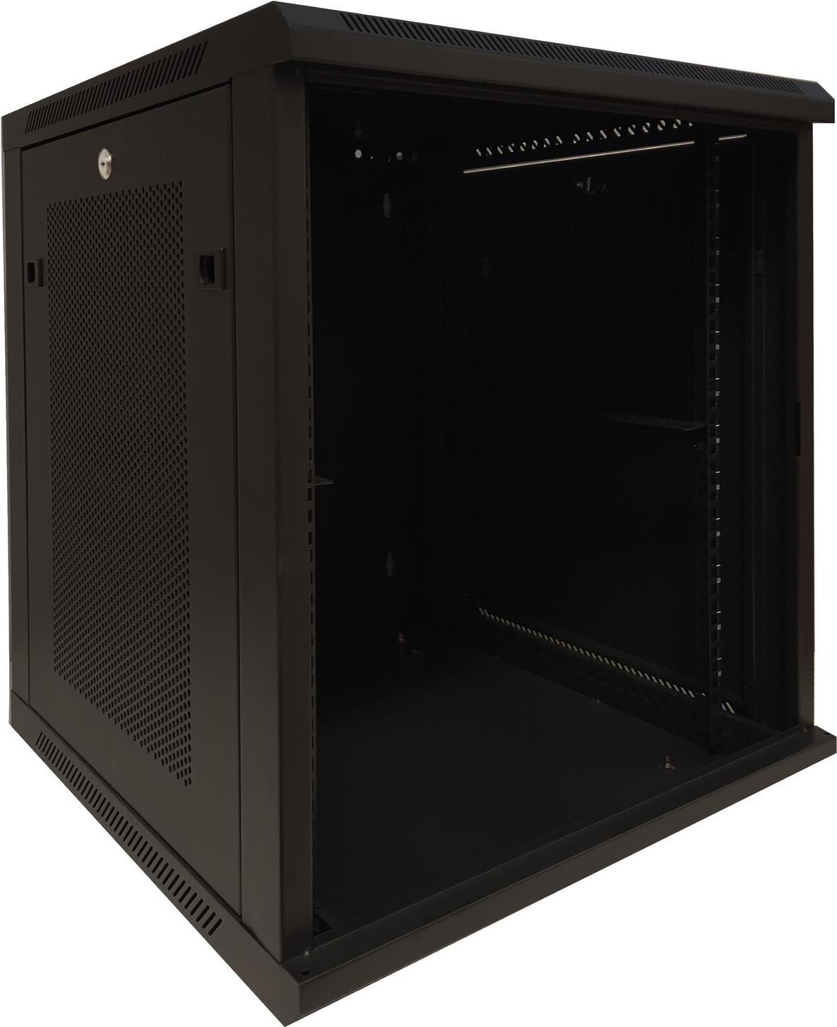 • DSIT 12 HE Serverschrank, 19” Wandgehäuse mit Glastür und Perforierte Seitenwände (BxTxH) 600 x 600 x 635mm (DS6612ZP)