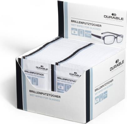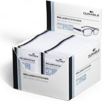 DURABLE Brillenputztücher feucht 100 Stück weiß (585302)