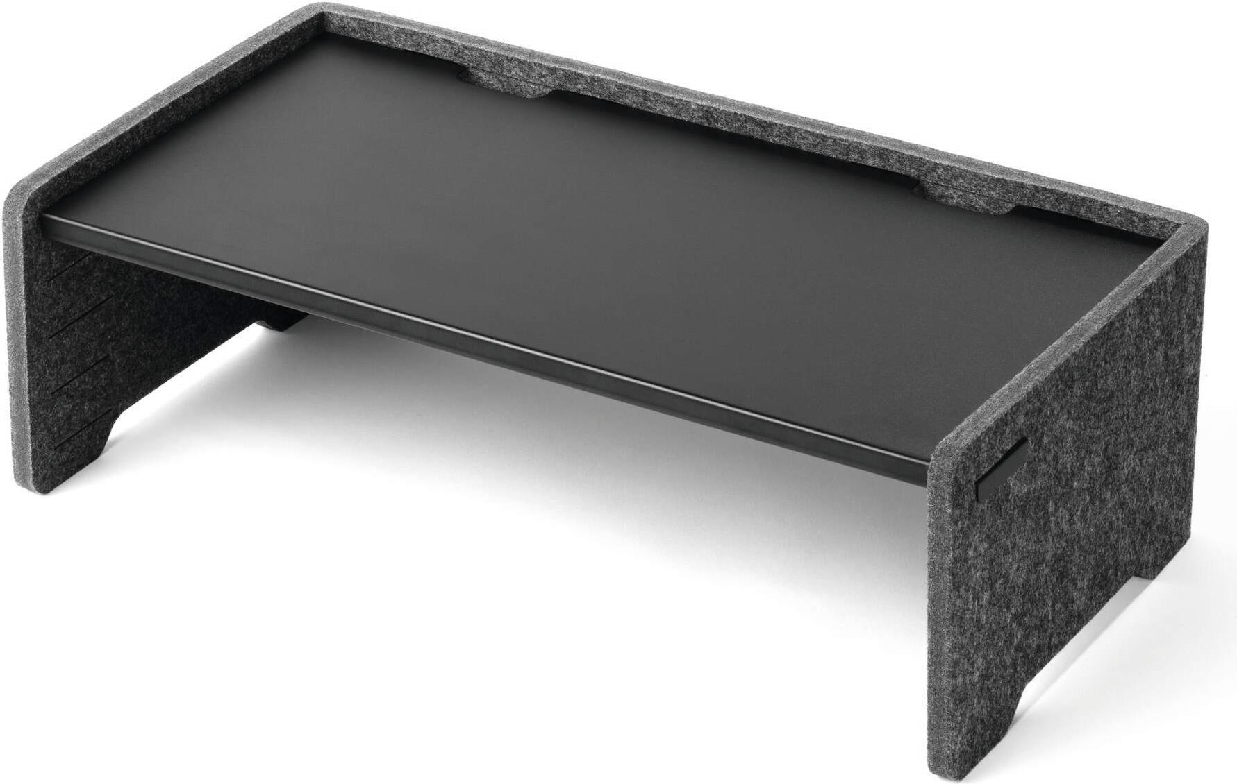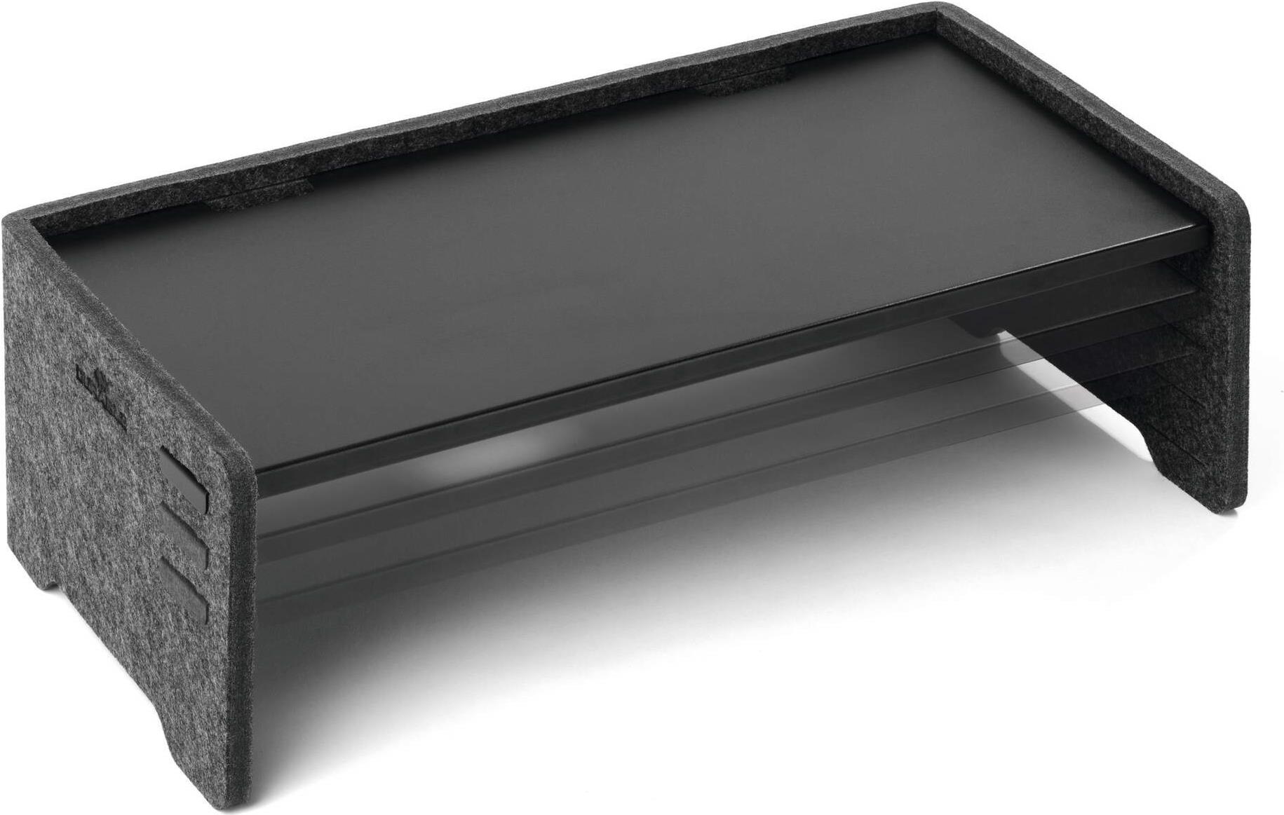 Durable EFFECT Monitor-Erhöhung Anthrazit-Grau - 3-fach ergonomisch höhenverstellbarer Ständer für Monitore und Laptops. Einfache Einstellung der individuellen - ergonomischen Höhe durch zwei Steckverbinder - kein lästiges Verschrauben oder Verkleben erforderlich Die hohe Standfestigkeit gewährleistet sicheres Arbeiten. Integrierte Kabelauslässe gewährleisten eine ordentliche Kabelführung. Das Produkt fügt sich dank seines Materials harmonisch in jede Umgebung ein und schafft eine behagliche Atmosphäre. Optional erweiterbar durch eine Schublade - die zusätzlich Stauraum und eine aufgeräumte Arbeitsfläche schafft. <ul><li> Maße: 49,6 x 16,2 x 26 cm (B x H x T) </li><li> Tragfähigkeit: 10 kg </li><li> höhenverstellbar </li><li> Werkstoff: PET-Filz - 60 % recycelt/Stahl - pulverbeschichtet </li><li> Farbe: anthrazit</li></ul> (508158)