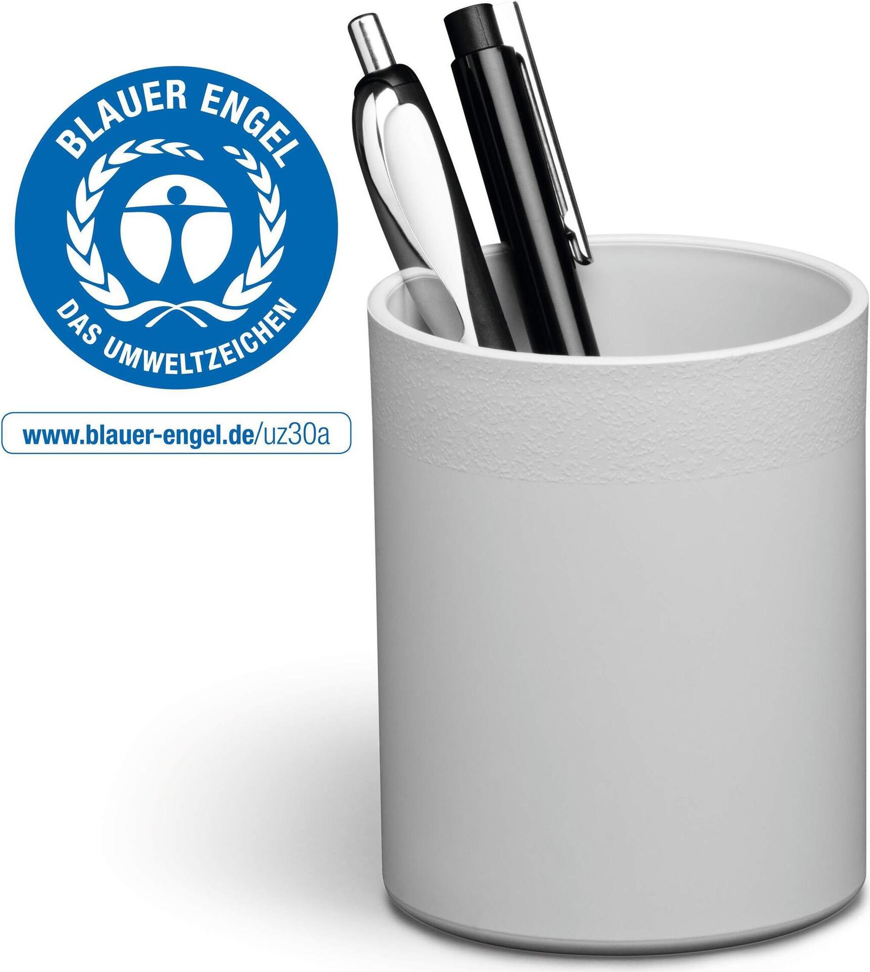 Der DURABLE ECO Stiftehalter ist ein Organisationsmittel für jeden Arbeitsplatz, das für Stifte, Scheren und Textmarker konzipiert ist. Er besteht aus recyceltem Kunststoff und erfüllt seinen funktionalen Zweck, während er gleichzeitig die Nachhaltigkeit im Büro fördert. Dieser Stiftehalter entspricht dem Umweltzeichen Blauer Engel und spiegelt das Engagement für umweltfreundliche Produkte wider, sodass Benutzer ihren Schreibtisch ordentlich halten und gleichzeitig die Umwelt schonen können.