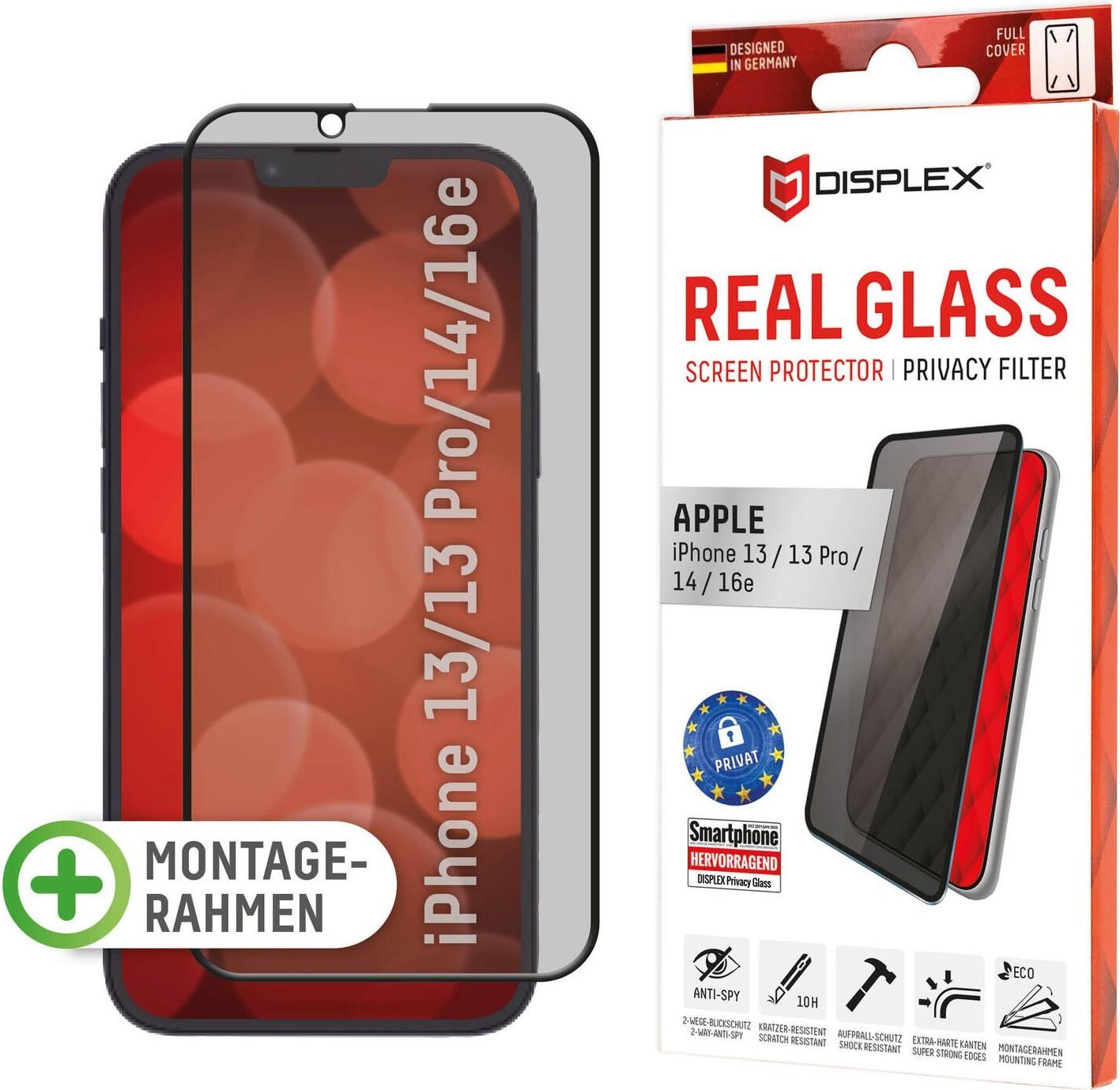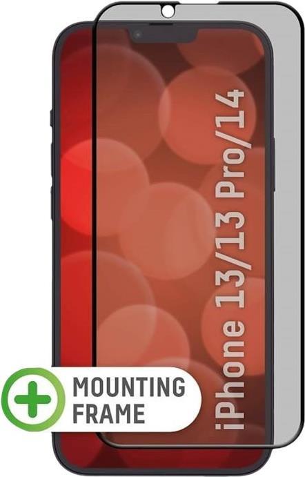 E.V.I. DISPLEX Real Glass - Bildschirmschutz für Handy - 3D - Glas - mit Sichtschutzfilter - 2-Wege - klebend - Rahmenfarbe schwarz - für Apple iPhone 13, 13 Pro, 14 (01706)