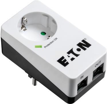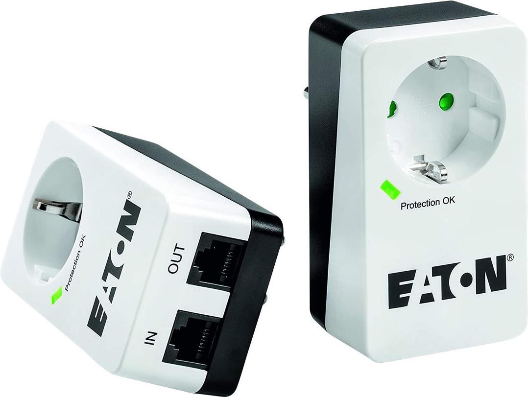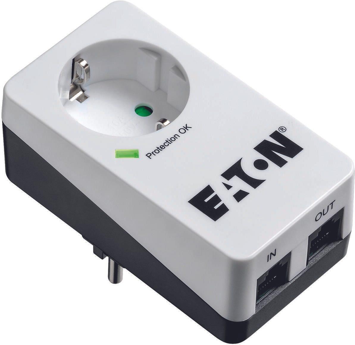 Eaton Protection Box 1 TEL@ DIN - Steckdosenadapter mit Überspannungsschutz (Schuko Buchse, Telefon Schutz) - weiß (PB1TD)