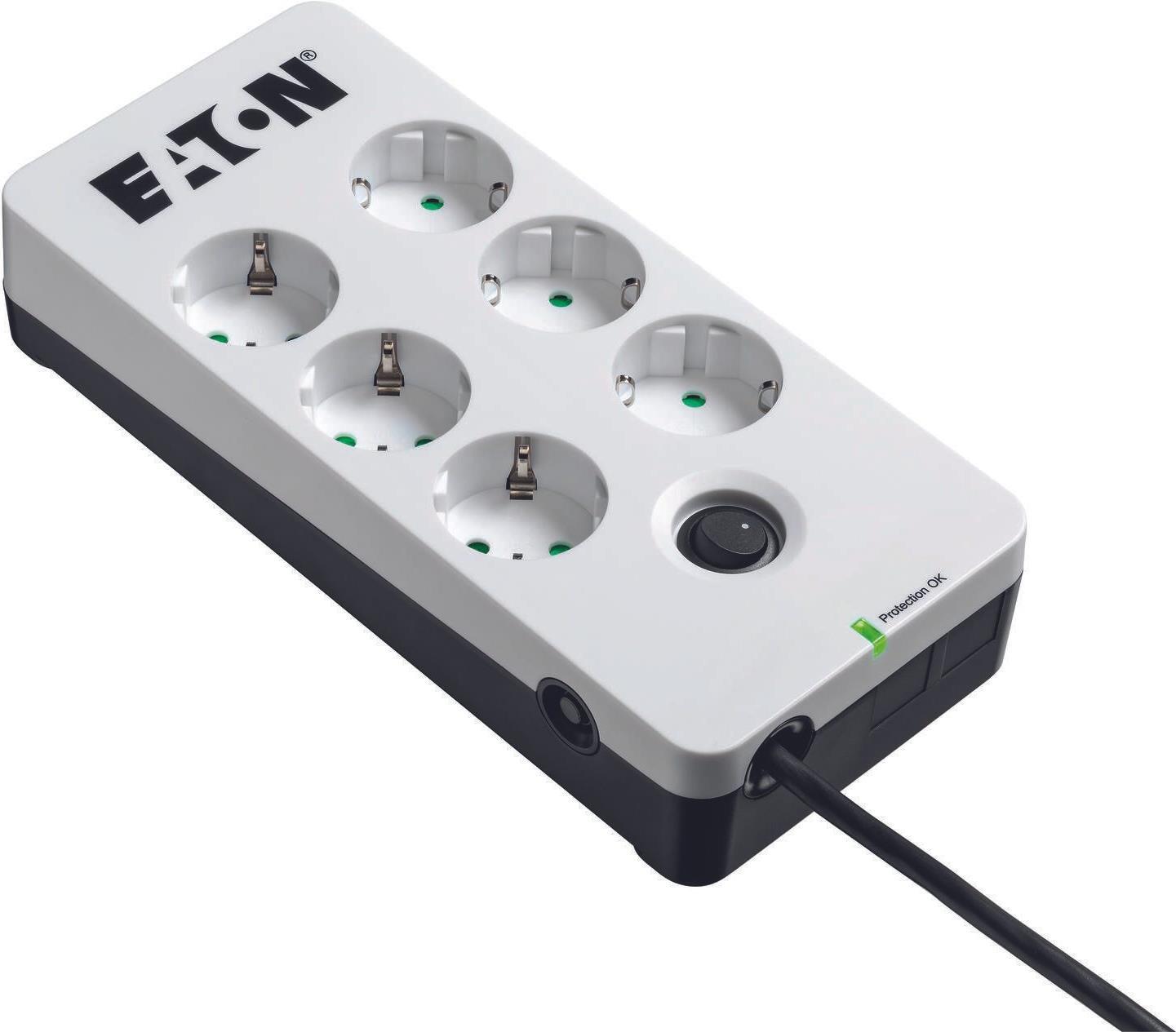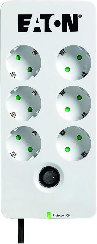 Eaton Protection Box 6 DIN - Steckdosenleiste mit Überspannungsschutz (6-Fach Schuko Buchse, schaltbar) - weiß (PB6D)