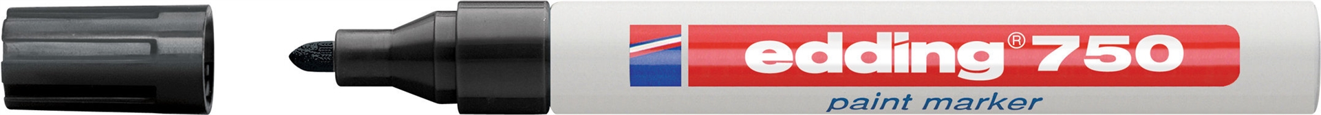 Der edding 750 paint marker hat eine 2 - 4mm breit malende Rundspitze. Vor der Verwendung sollten Sie den Marker bei aufgesetzter Kappe kurz schütteln, danach den Marker öffnen und die Spitze auf einem Testpapier vorsichtig auf- und abpumpen, bis Farbe die Spitze füllt. Schon ist der edding 750 paint marker startklar. Die Tinte ist äußerst geruchsarm und nach dem Trocknen wasser-, abrieb-, licht- und hitzebeständig.