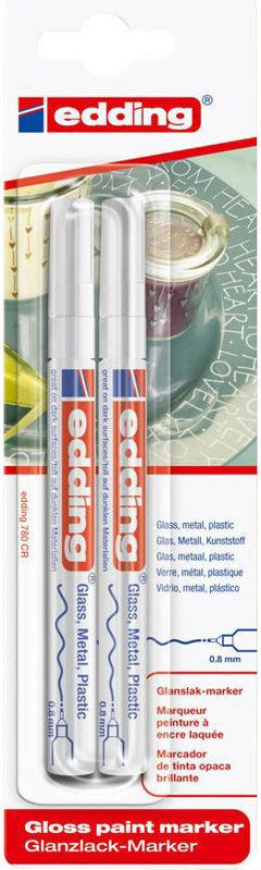 Edding 780 - Weiß - Mehrfarbig - Rundspitze - 0,8 mm - Glas - Metall - Kunststoff - 2 Stück(e) (4-780-2-1049)
