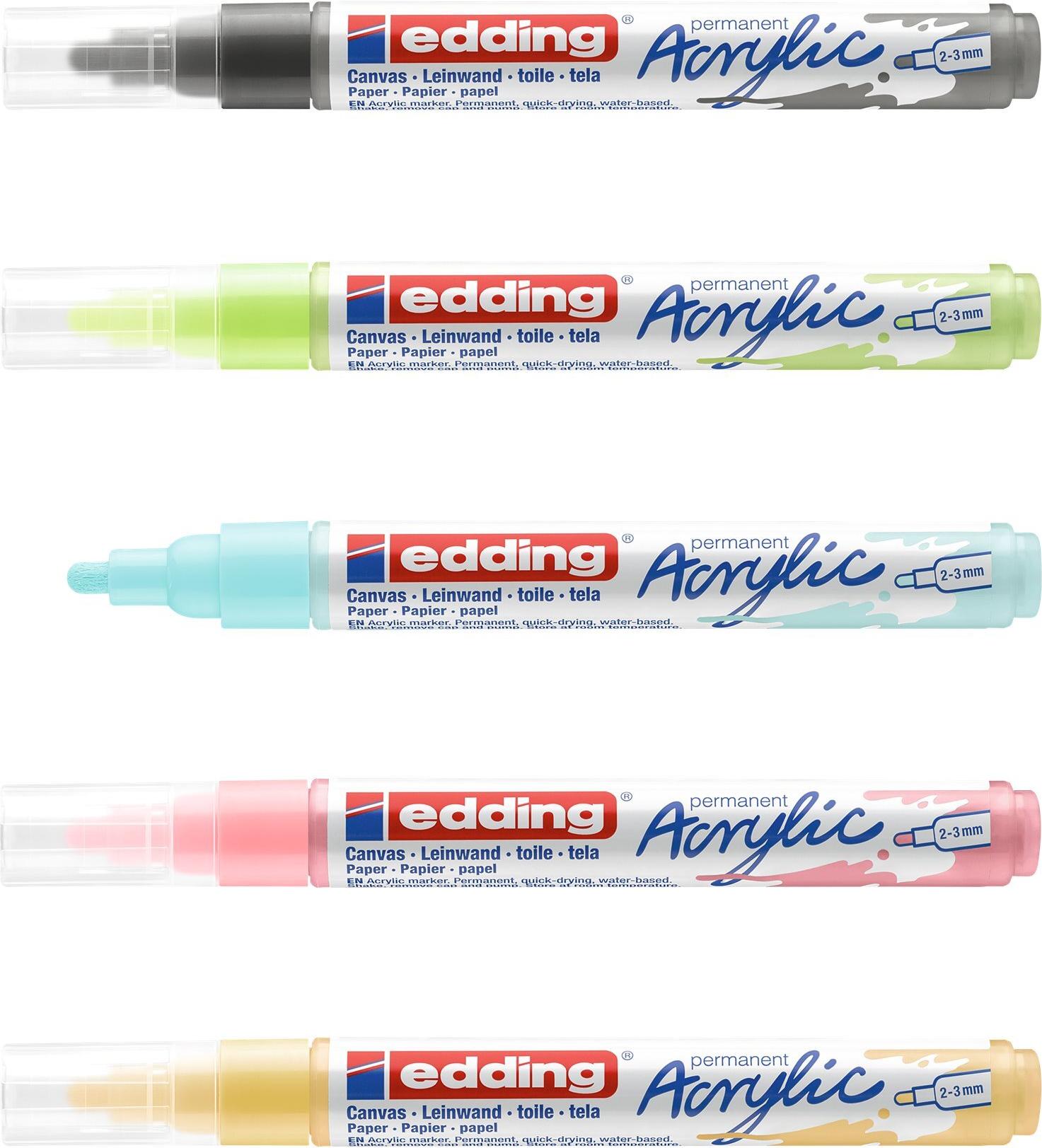Edding 5100 Acrylmarker Medium - Schwarz - Blau - Grün - Pink - Gelb - Schwarz - Blau - Grün - Pink - Gelb - Medium - 2 mm - 3 mm - Kanvas - Holz (4-5100-5-099)