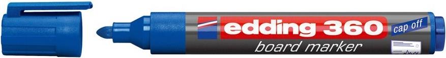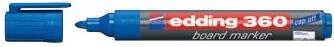 Whiteboardmarker edding 360. Nachfüllbarer Marker für Whiteboards. Geruchsarme Tinte auf Alkoholbasis. Kann einige Tage offen liegen bleiben, ohne einzutrocknen. Austauschbare Rundspitze. Kunststoffschaft. Umsteckbare Kappe in Schreibfarbe mit Kunststoffclip. Schaftfarbe: grau.Strichstärke: ca. 1,5 - 3 mm. Schreibfarbe : blau.