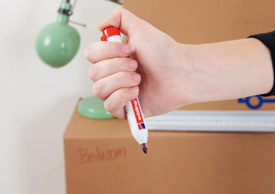 Der Permanentmarker hat keine Kappe, die Spitze wird durch einfachen Druck auf den Druckknopf ausgefahren und durch Druck auf den Drücker im Clip oder durch leichtes Anheben des Clips eingezogen.
