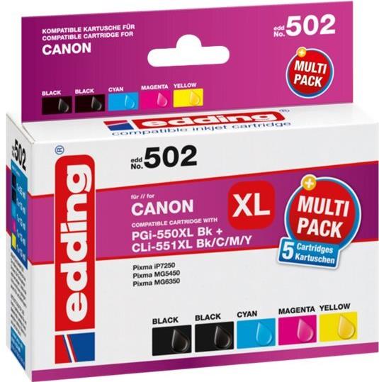 Edding Tinte ersetzt Canon PGI-550PGBK XL, CLI-551 C,M,Y XL Kompatibel Kombi-Pack Schwarz, Cyan, Magenta, Gelb EDD-502 E (EDD-502)
