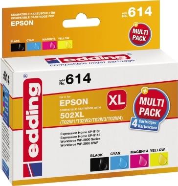 Edding Tintenpatrone ersetzt Epson 502XL /T02W1/T02W2/T02W3/T02W4 Kompatibel Kombi-Pack Schwarz, Cyan, Magenta, Gelb EDD-614 18-614 (18-614)
