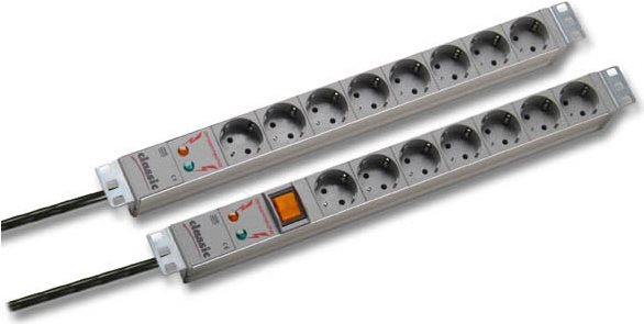 19" 1HE Steckdosenleiste 7 x Schutzkontakt mit ÜSS und Schalter, grau Hersteller: Bachmann (691688)