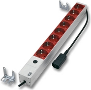 19" 1HE Steckdosenleiste 8 x Schutzkontakt (rot) mit Zuleitung IEC C1 Hersteller: Bachmann (691698)