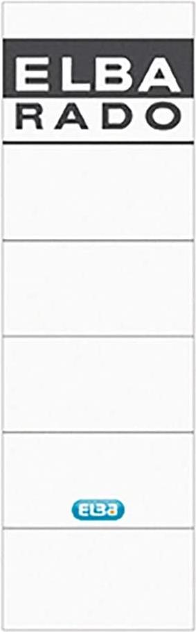 ELBA Ordner-Rückenschild "ELBA RADO" - kurz/breit, weiß Aufdruck: grau, selbstklebend, Maße: (B)59 x (H)190 mm (04617 WE)