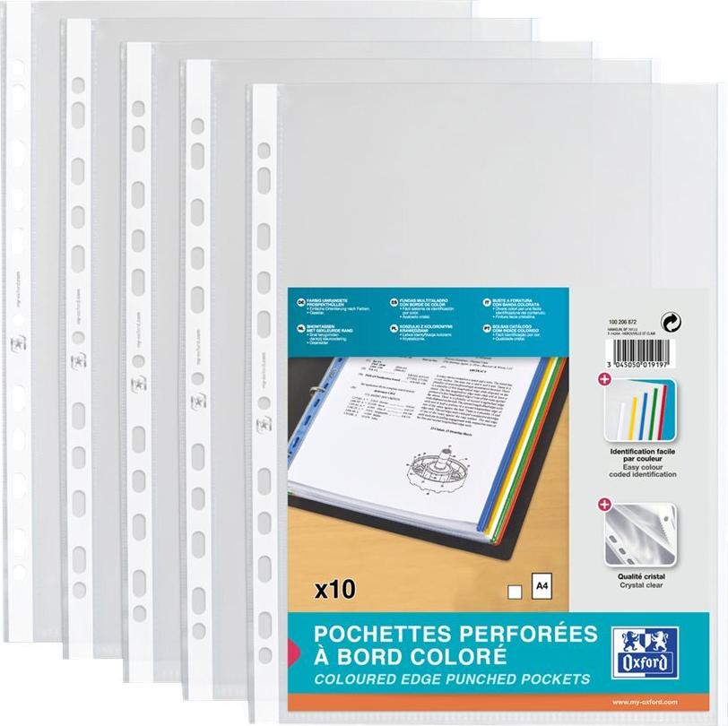 ELBA Prospekthülle, DIN A4 mit farbigem Rand, PP, weiß 0,09 mm, glasklar, oben offen, Eurolochung - 10 Stück (100206872)