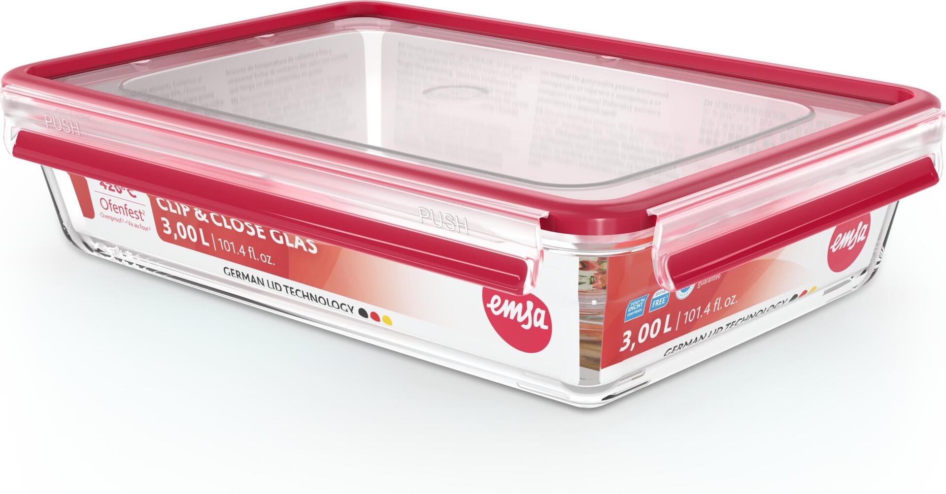 EMSA CLIP & CLOSE GLAS - Box - Rechteckig - 3 l - Transparent - Glas - 420 °C (600745)