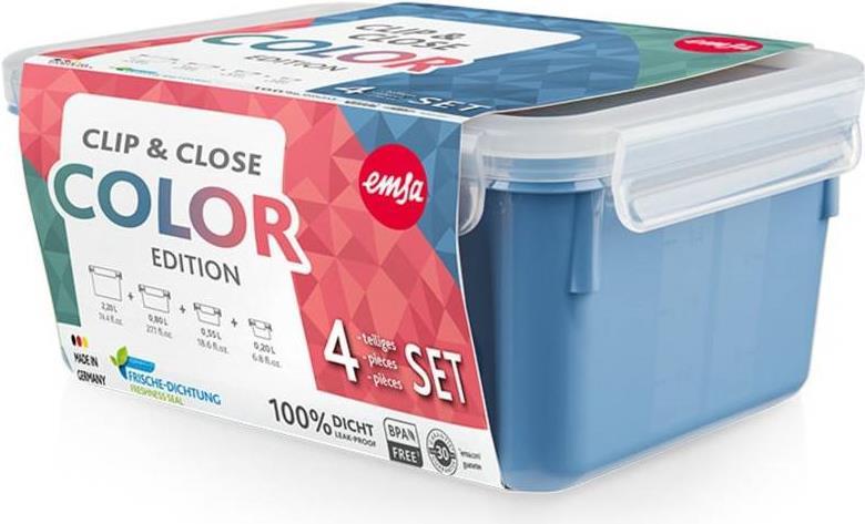 emsa Frischhaltedose CLIP & CLOSE COLOR, 4er Set, blau Inhalt: je 1 Dose 0,20 L, 0,55 L, 0,80 L, 2,20 L, - 1 Stück (N1030800)