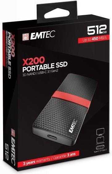 EMTEC SSD Power Plus X200 - SSD - 512GB - extern (tragbar) - USB 3,1 Gen 1 (USB-C Steckverbinder) (ECSSD512GX200)
