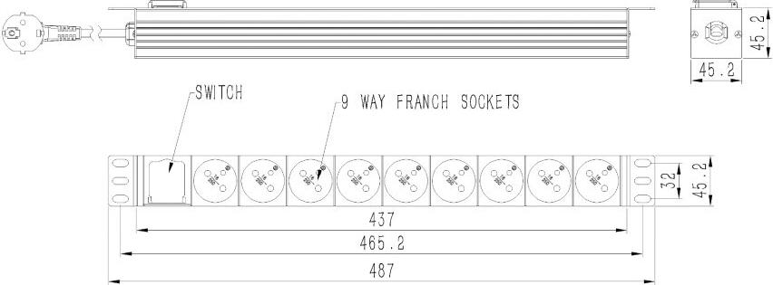 • EnerGenie EG-PDU-9F2F Stromverteiler (PDU), 10 C13-Steckdosen, 1 HE, 16 A, C20-Stecker, 2 m Kabel, schwarz (EG-PDU-9F2F)