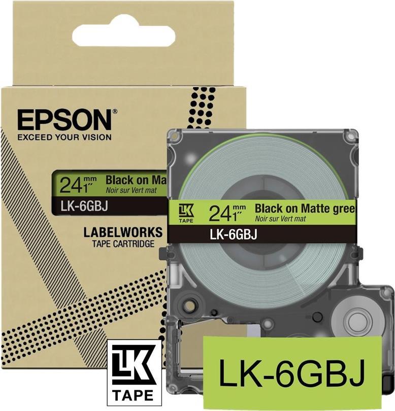 Epson LabelWorks LK-5GBJ - Schwarz auf Mattgrün - Rolle (1,8 cm x 8 m) 1 Kassette(n) Hängebox - Bandkassette - für LabelWorks LW-C410, LW-C610 (C53S672078)