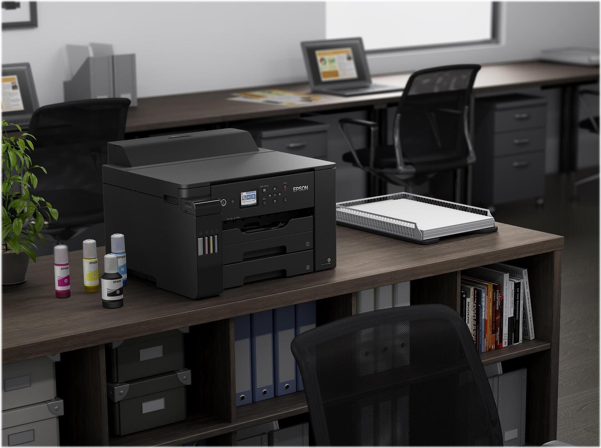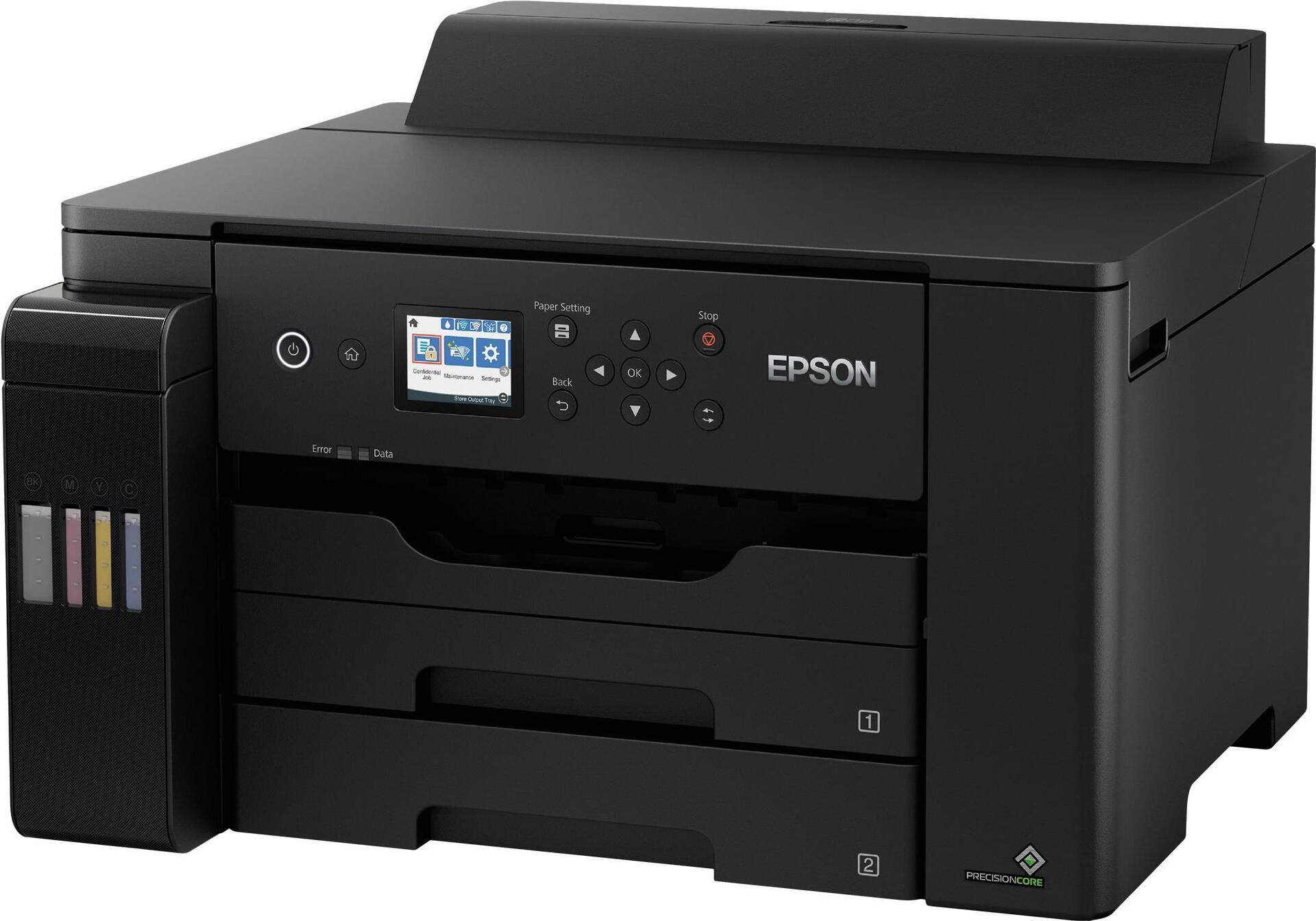 Mit diesem funktionsreichen EcoTank-Drucker drucken Sie Dokumente bis zum Format DIN A3+ ganz einfach und zu geringen Kosten pro Seite. Dank hohen Druckgeschwindigkeiten, zwei Papierkassetten für jeweils 250 Blatt auf der Vorderseite und einem Papiereinzug für 50 Blatt auf der Rückseite sind DIN A3+ Druckaufträge schnell erledigt. Mobile Druckfunktionen, die Ethernet-Schnittstelle und das 6,1 cm große Farb-LC-Display mit zusätzlichen Tasten auf dem Bedienfeld erleichtern Ihnen den Arbeitsalltag.