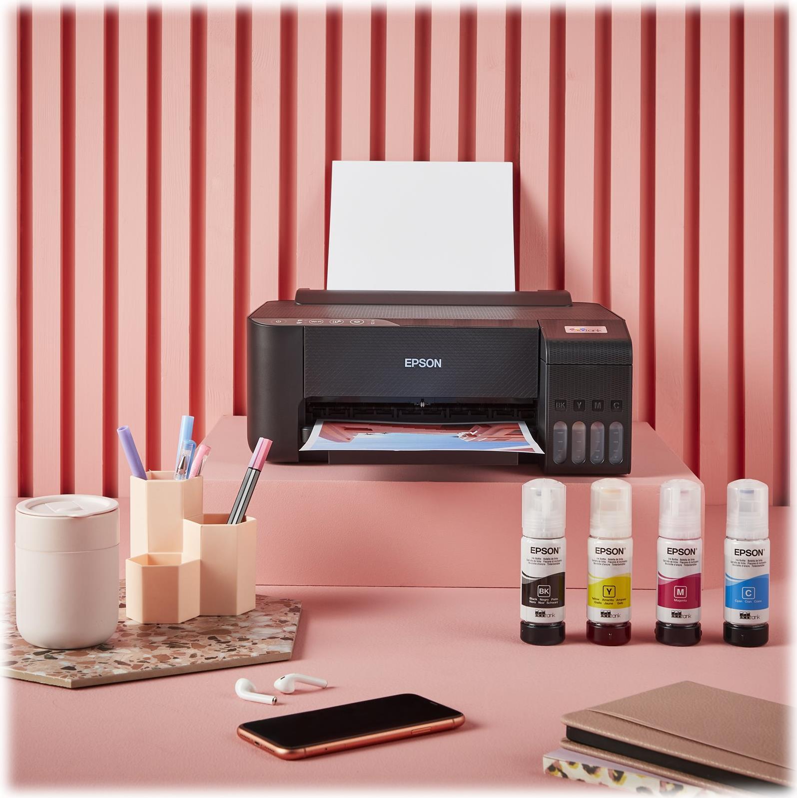 | Enthaltene Verbrauchsmaterialien | 1 x Tintenbehälter (Schwarz) - bis zu 3600 Seiten 1 x Tintenbehälter (Cyan) - bis zu 6500 Seiten 1 x Tintenbehälter (Magenta) - bis zu 6500 Seiten 1 x Tintenbehälter (Gelb) - bis zu 6500 Seiten |