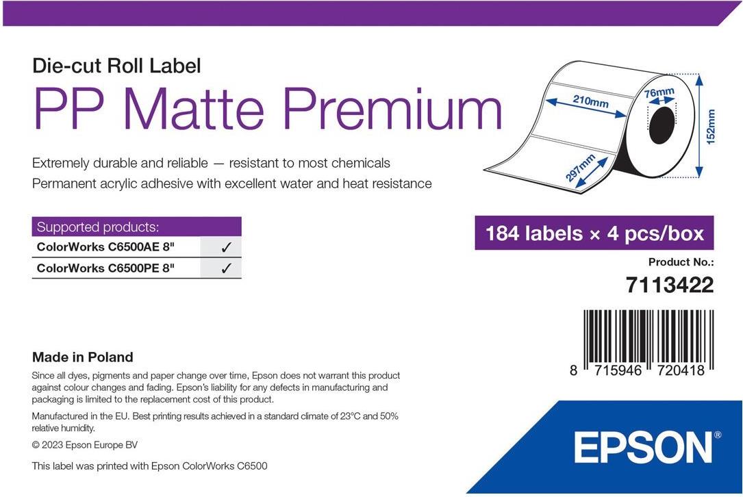 Epson Premium - Polypropylen (PP) - matt - permanenter Acrylklebstoff - A4 (210 x 297 mm) 736 Etikett(en) (4 Rolle(n) x 184) Box - gestanzte Etiketten (7113422)