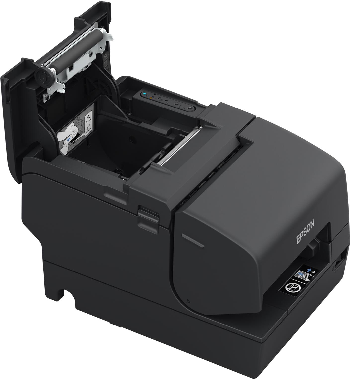 Epson TM-H6000VI, Cutter, MICR, USB, RS232, Ethernet, OPOS, schwarz Mehrstationen-Drucker, Thermodirekt, Nadeldruck, 7 Punkte/mm (180 dpi), Medienbreite (max): 80 mm, Rollendurchmesser (max.): 83mm, Geschwindigkeit (max.): 500 mm/Sek, Cutter, MICR, USB (Typ A, Typ B), RS232, Ethernet, Kassenladenanschluss, Emulation: OPOS, JavaPOS, inkl.: Netzteil, Netzkabel (EU), Bonrolle, QSG, separat bestellen: Schnittstellenkabel, Farbe: schwarz (C31CL25112)