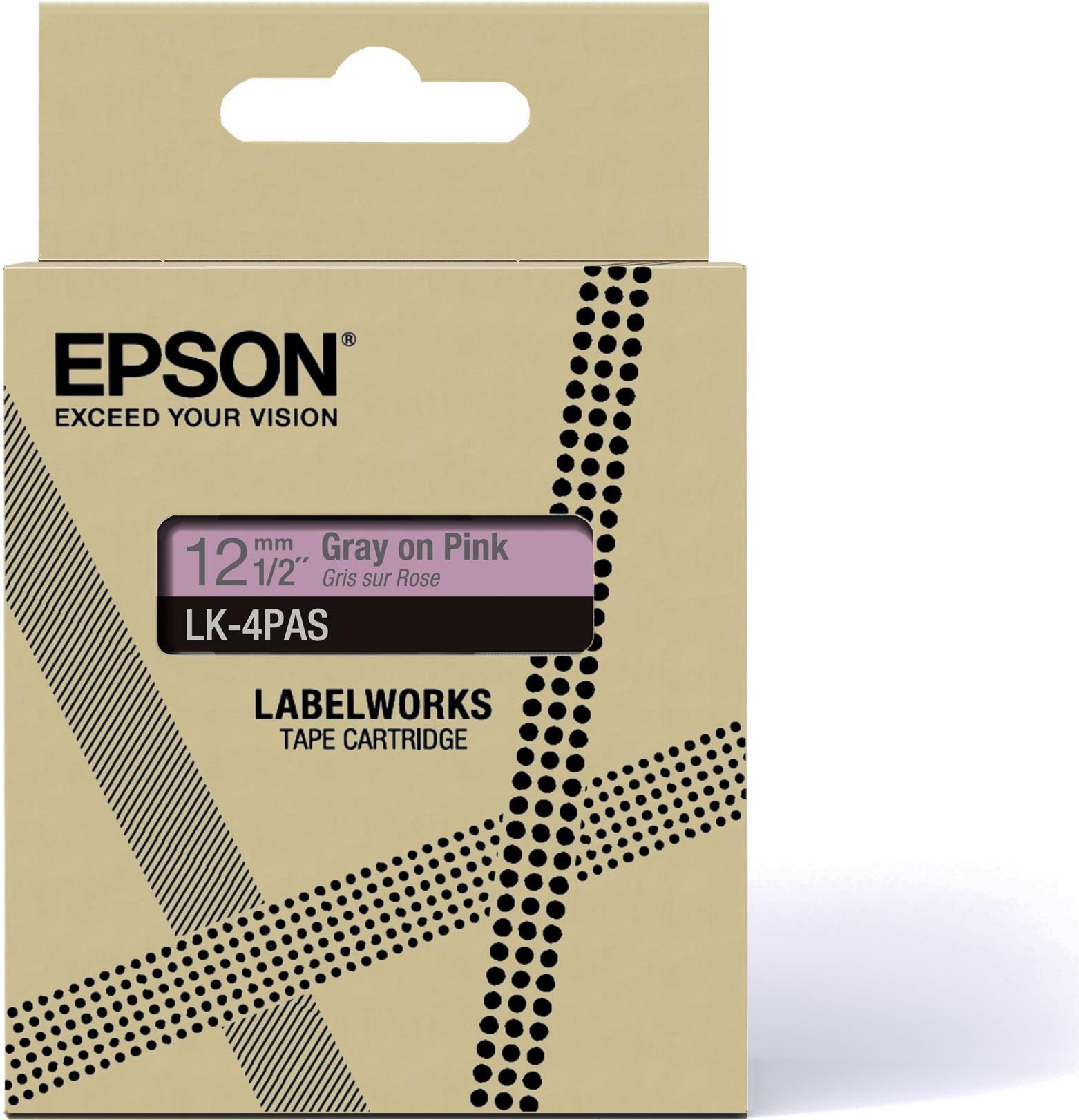 Epson LabelWorks LK-4PAS - Soft Pink/Gray - Rolle (1,2 cm) 1 Kassette(n) Band - für LabelWorks LW-C410, LW-C610