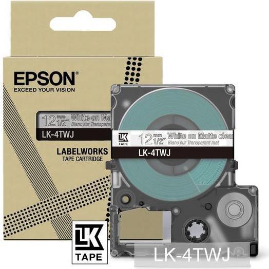 Epson LabelWorks LK-4TWJ - Weiß auf Matt-Transparent - Rolle (1,2 cm x 8 m) 1 Kassette(n) Hängebox - Bandkassette - für LabelWorks LW-C410, LW-C610