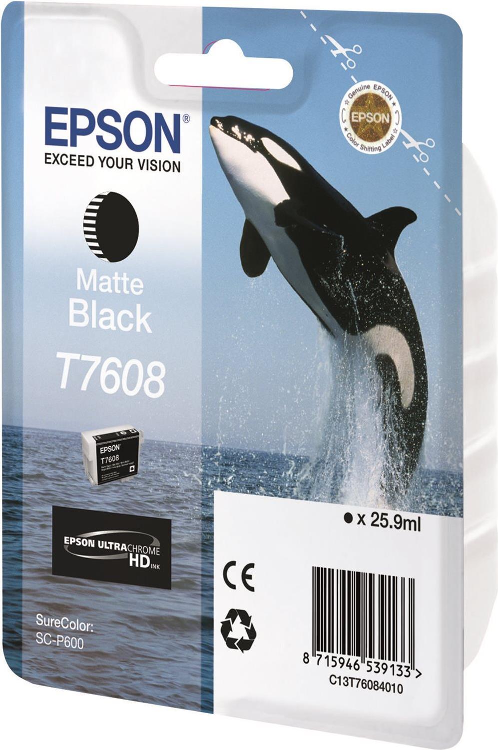 Epson T7608 - 25,9 ml - mattschwarz - original - Blisterverpackung - Tintenpatrone - für SureColor SC-P600 (C13T76084N10)