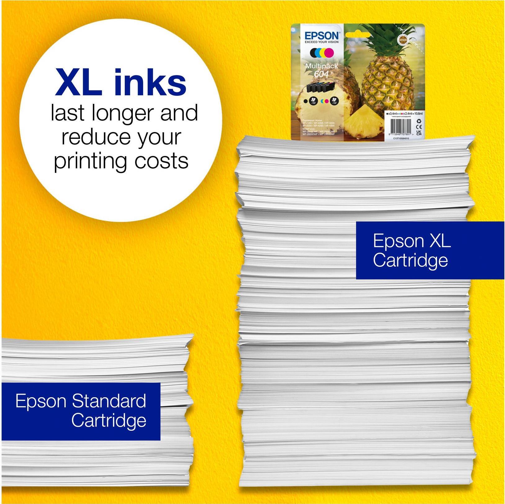 Das zuverlässige 4-Farben-Einzeltintenset von Epson eignet sich ideal für den täglichen Gebrauch. Für jeden Benutzertyp gibt es eine kostengünstige Patrone, sowohl in Standard- als auch in XL-Größe, als Einzel- oder Multipack. Sie finden diese Tinte ganz einfach im Store, indem Sie nach dem Ananas-Motiv suchen.