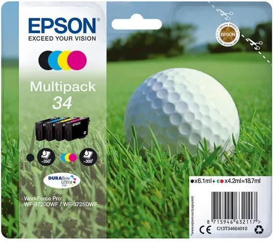 Erzielen Sie hochwertige Dokumente mit dem wirtschaftlichen Tintenset der Serie 34. Es erzeugt wasser-, wisch- und textmarkerfeste Dokumente mit professionellem Erscheinungsbild. Die schnell trocknenden Tinten eignen sich ideal für doppelseitiges Drucken, und mit den preiswerten Standard- oder XL-Patronen lässt sich jede Art von Druckaufkommen bewältigen. Mit dem Golfball auf der Verpackung können Sie unsere Tintensets im Laden auf einen Blick finden.