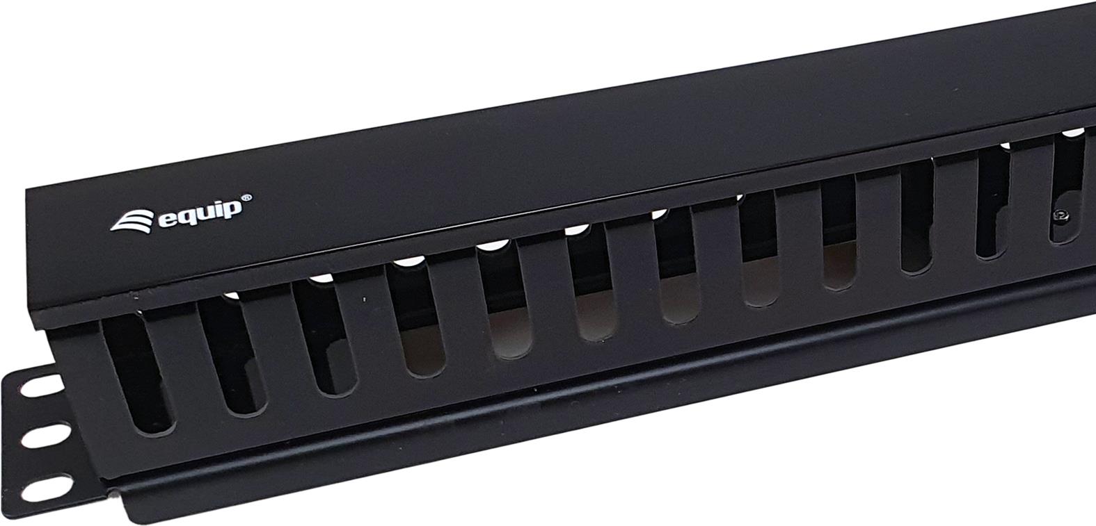 Equip 19" Rack Mount Kabelmanagement-Panel, Schwarz. Typ: Kabelmanagementtafel, Produktfarbe: Schwarz, Rack-Kapazität: 1U. Breite: 482,6 mm, Tiefe: 44,5 mm, Höhe: 60 mm. Verpackungsbreite: 490 mm, Verpackungstiefe: 65 mm, Verpackungshöhe: 50 mm. Breite des Versandkartons: 500 mm, Länge des Versandkartons: 270 mm, Höhe des Versandkartons: 360 mm (327314)
