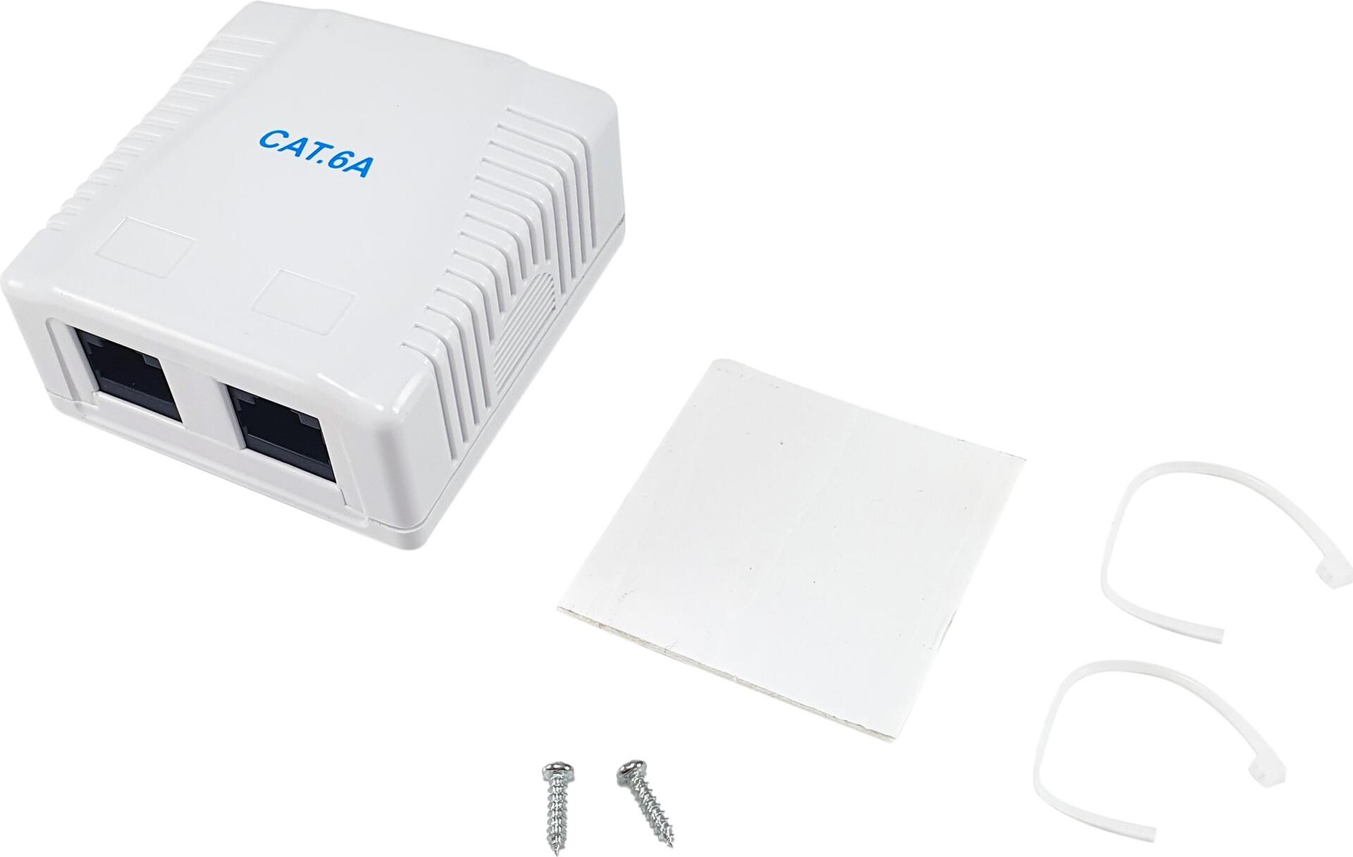 Equip 2-Port Cat.6A Aufputzdose. Breite: 61 mm, Höhe: 29,6 mm, Tiefe: 59,1 mm. Verpackungsbreite: 175 mm, Verpackungstiefe: 100 mm, Verpackungshöhe: 33 mm. Ursprungsland: China, Breite des Versandkartons: 460 mm, Länge des Versandkartons: 350 mm (235216)