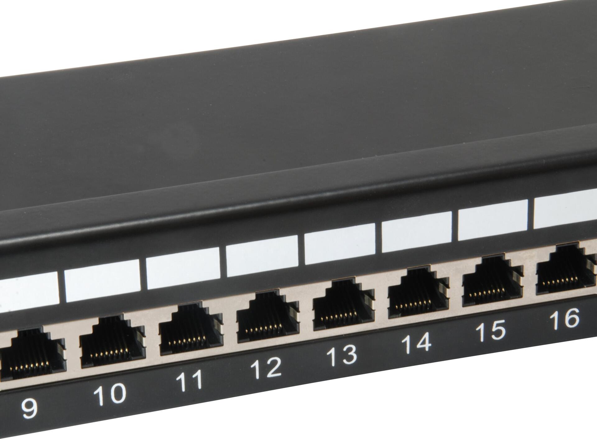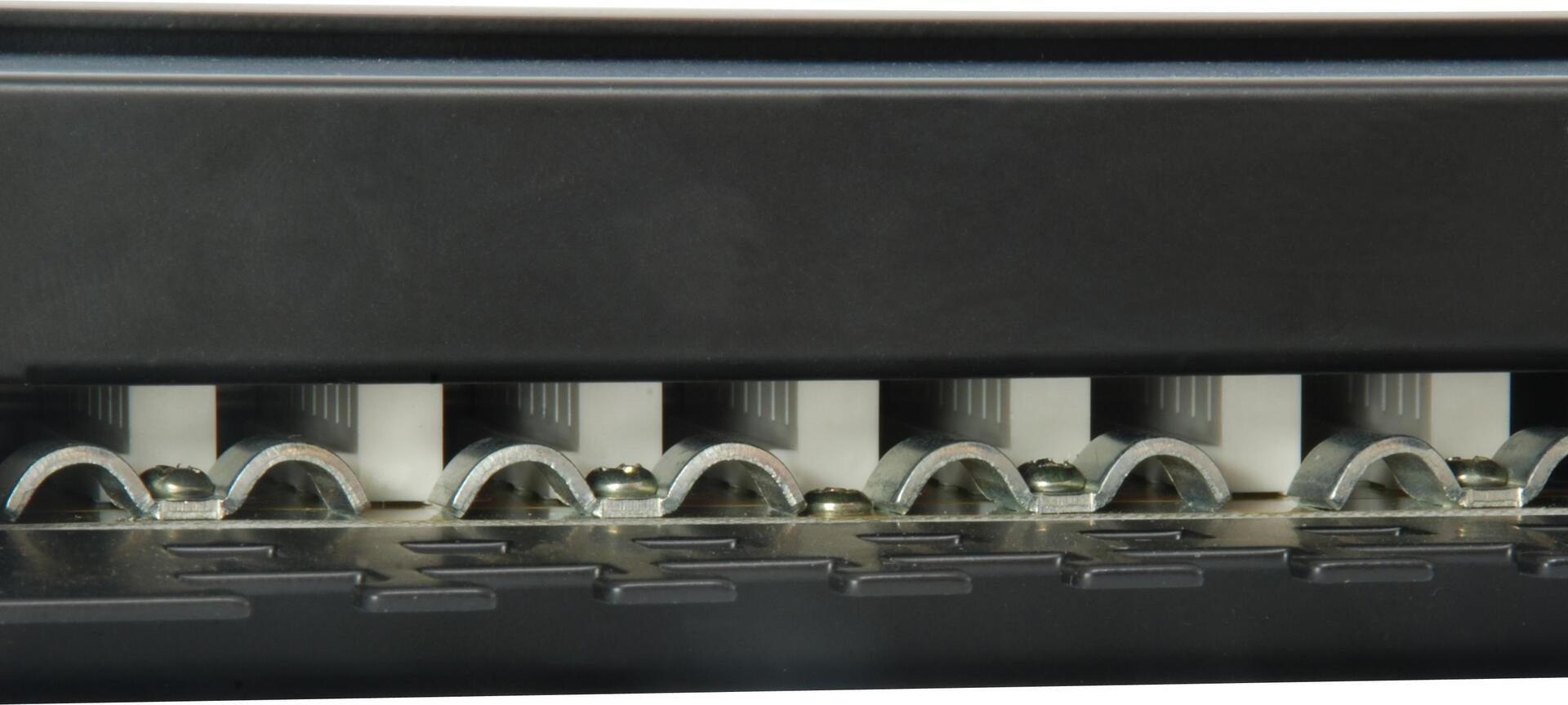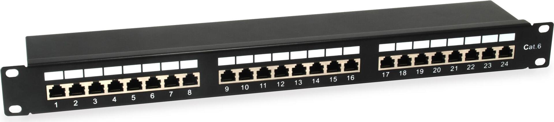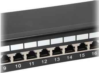 Das equip 24-Port Patch Panel ist ein 19 Zoll 1HE Netzverteiler mit einem integrierten Kabelmanagementsystem für bessere Routing- und Zugentlastungsanforderungen. Auflegen lässt sich mit üblichen LSA- als auch mit 110-Standard Werkzeugen. Mit 24 geschirmten RJ45-Ports wird empfohlen dieses Patch-Panel zusammen mit den geschirmten equip Patchkabeln und Zubehör zu nutzen, um eine hervorragende Leistung zu erzielen. Darüber hinaus ist jeder Port mit der Port-Nummer für eine erleichterte Identifizierung markiert.