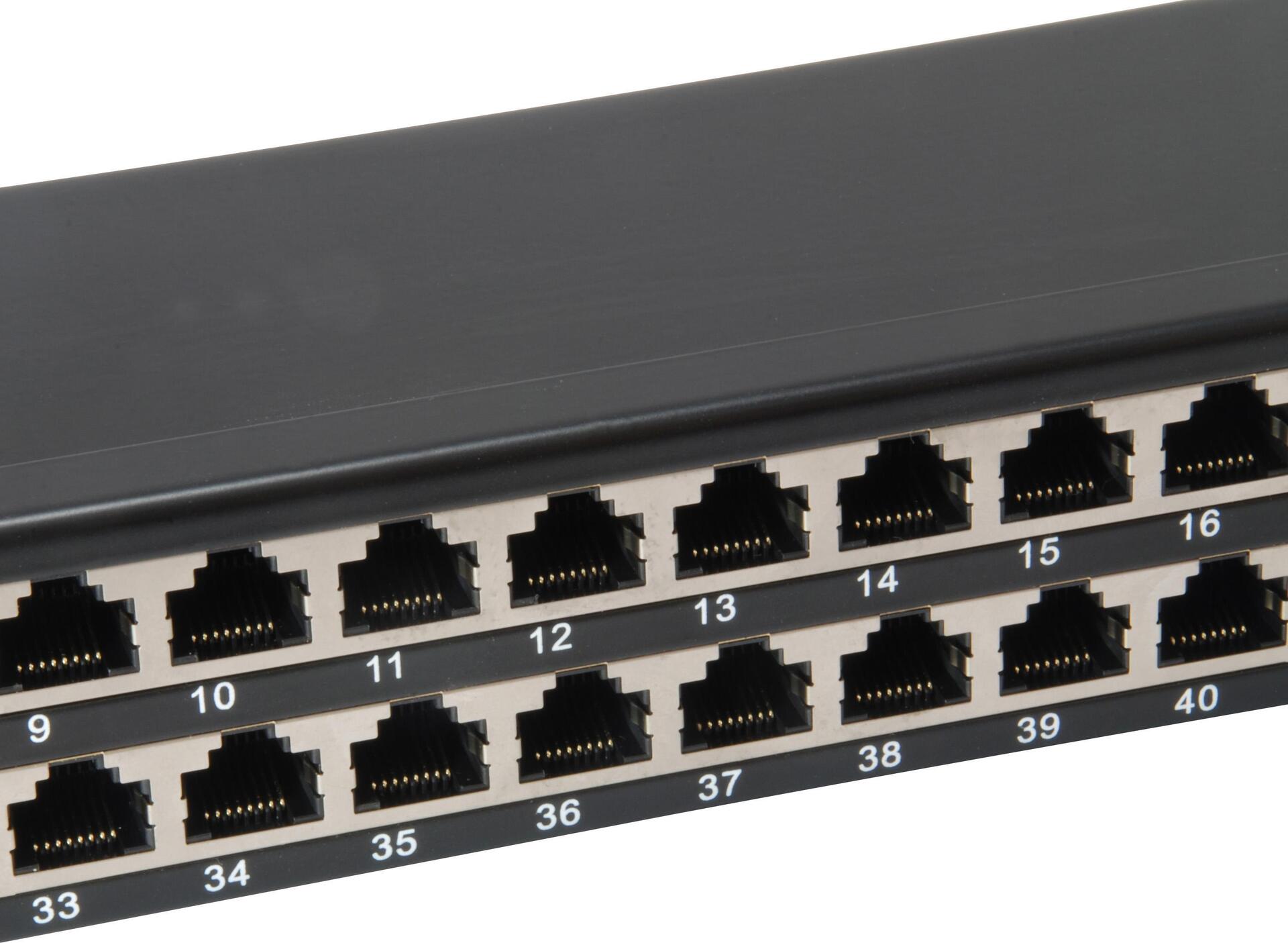 Das equip 48-Port Patch Panel ist ein 19 Zoll 1HE Netzverteiler, mit einem integrierten Kabelmanagementsystem für bessere Routing- und Zugentlastungsanforderungen. Auflegen lässt sich mit üblichen LSA- als auch mit 110-Standard Werkzeugen. Die hohe Anschlussdichte von 48-Ports spart Platz und sorgt für Ordnung im Netzwerkverteiler. Darüber hinaus wird empfohlen dieses geschirmte Patch-Panel zusammen mit den geschirmten equip Patchkabeln und Zubehör zu nutzen, um eine hervorragende Leistung zu erzielen. Außerdem verfügt jeder Port über einen Aufdruck der Port-Nummer, der die Identifizierung erleichtert.