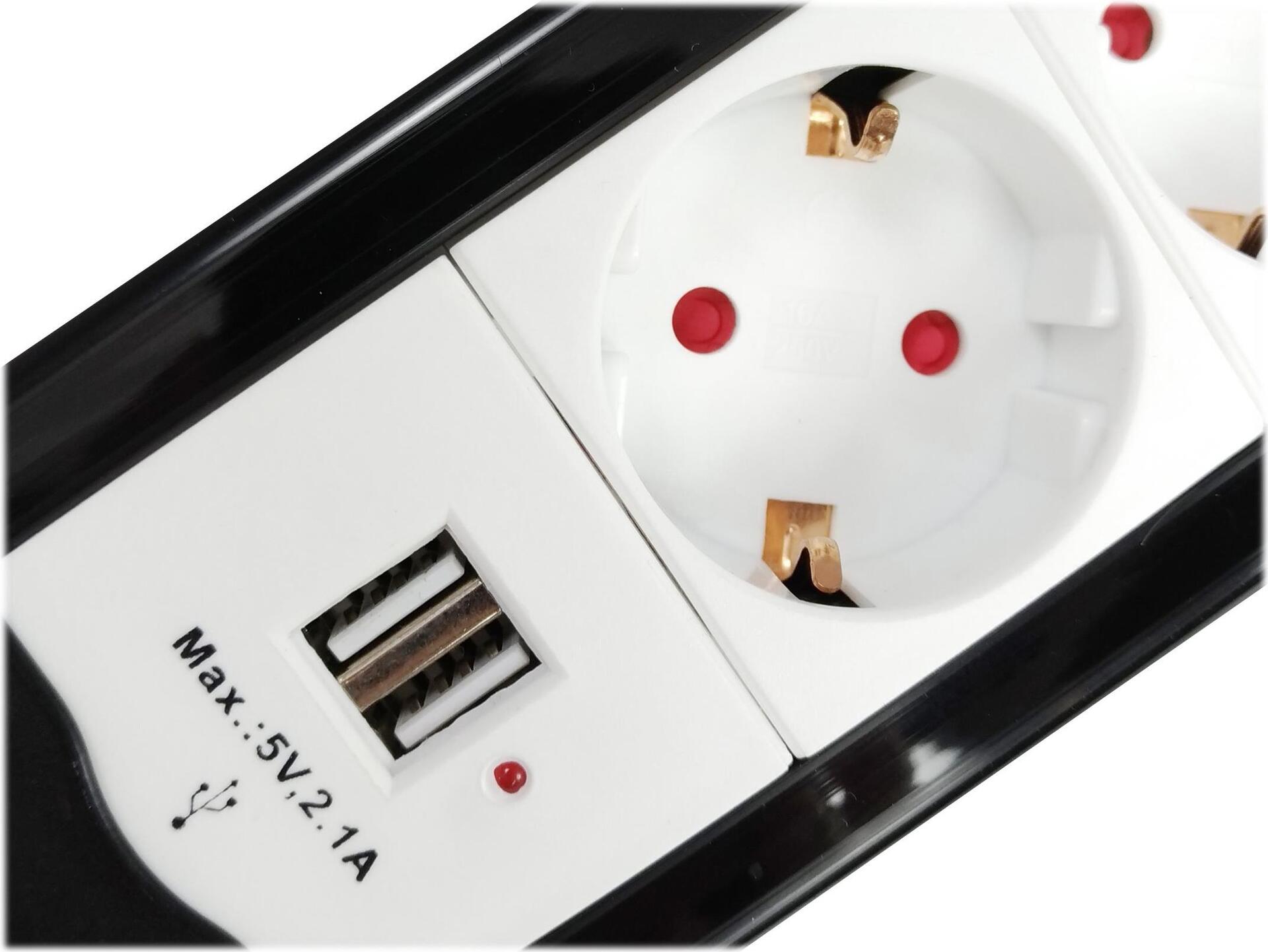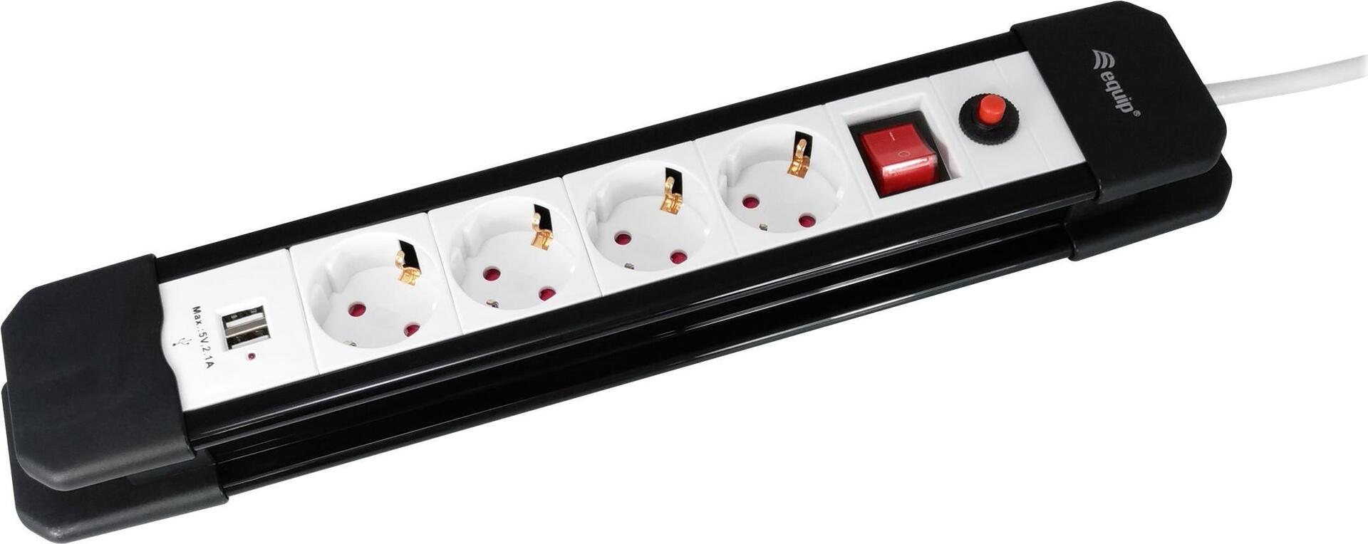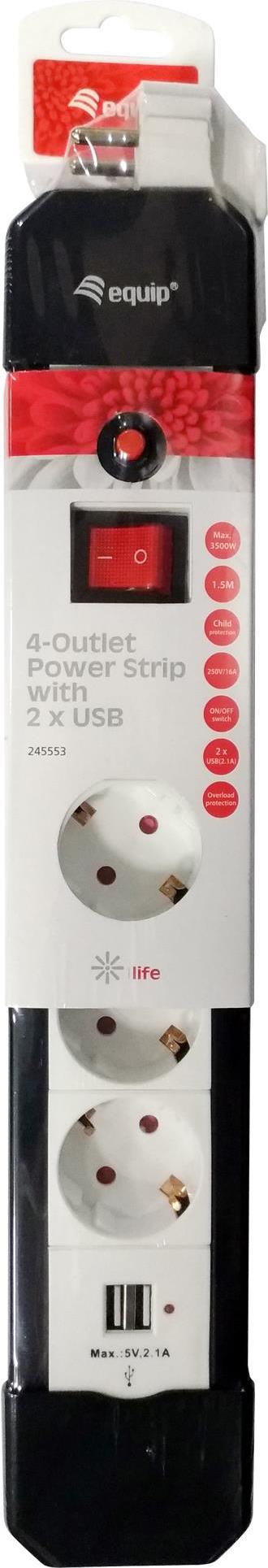 Der equip 4-Socket Power Strip verfügt über 4 Standard-Steckdosen mit 2 USB-Anschlüssen, passt zu den meisten Ihrer Stromversorgungen und bietet eine sichere Stromversorgung.
