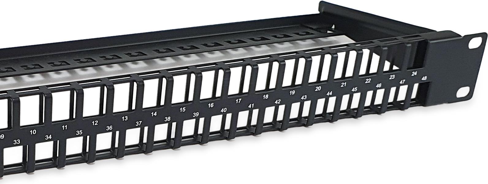 Das Patch-Panel für die digitale Datenkommunikation wurde für ein effizientes Kabelmanagement in Netzwerkumgebungen entwickelt. Mit 48 Anschlüssen und abgeschirmten Funktionen gewährleistet dieses Panel eine zuverlässige Konnektivität und reduzierte Signalstörungen. Jede Keystone-Öffnung ermöglicht eine einfache Installation und bietet Flexibilität bei der Konfiguration, wodurch es zu einer unverzichtbaren Komponente für jedes strukturierte Verkabelungssystem wird. Das Panel ist in einem Standard-19-Zoll-Rack montierbar und bietet eine optimierte Lösung für Netzwerkinstallationen, die Organisation und Zugänglichkeit erfordern. Dieses Patch-Panel aus strapazierfähigem Stahl hält dem täglichen Gebrauch stand und erfüllt die RoHS- und REACH-Normen. Die mitgelieferte Stützstange vereinfacht die Installation und bietet die notwendige Unterstützung für eine optimale Leistung. Dieses Patch-Panel verbessert die Netzwerkeffizienz und trägt zu einer sauberen und professionellen Einrichtung bei.