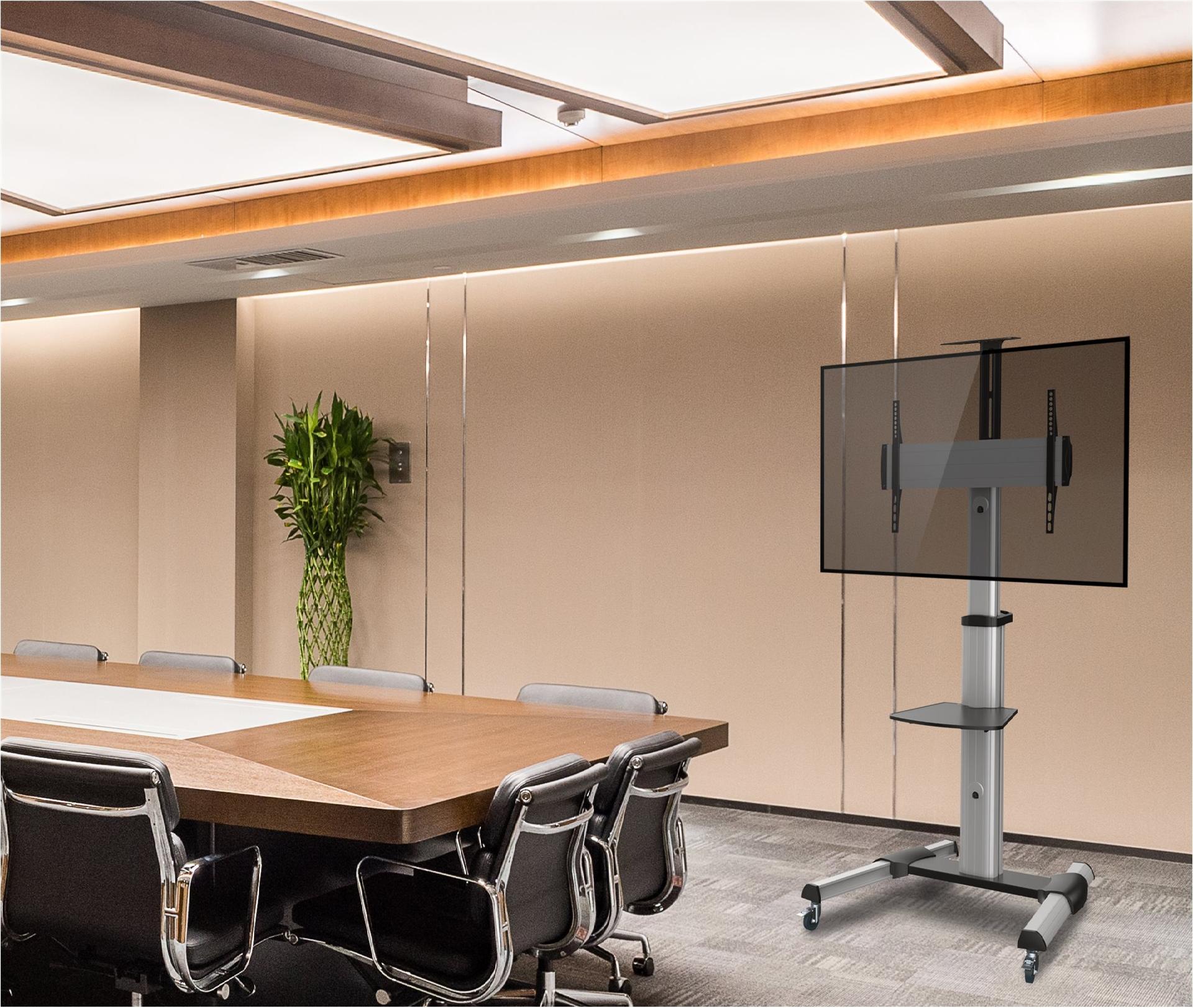 Der equip 650602 Einzeldisplay-TV-Wagen mit stilvollem, technischem und funktionalem Design bietet eine solide Präsentationslösung für die meisten 37-70-Zoll-LED-LCD-Flachbildfernseher mit einer Tragfähigkeit von bis zu 50 kg. Seine vertikalen Flachbildschirm-TV-Halterungen ermöglichen eine mühelose Höhenverstellung von max. Die freie Neigung um +5° bis -10° ermöglicht eine einfache Winkeleinstellung und reduziert die Blendung durch Lichter oder Fenster, um optimalen Sehkomfort zu erzielen. Die solide Basis sorgt für zusätzliche Sicherheit, indem sie die Möglichkeit des Stolperns verhindert und eine zuverlässige Leistung über Jahre hinweg gewährleistet. Das interne Kabelmanagement verbirgt Kabel vor dem Blick und sorgt so für ein aufgeräumtes Erscheinungsbild. Ideal für Konferenzen, öffentliche Präsentationen oder andere professionelle Präsentationen.
