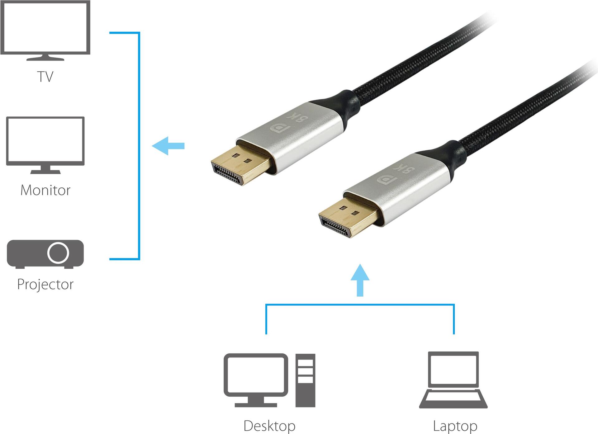 Das DisplayPort-Kabel 119266 von Digital Data Communications Equip liefert Hochgeschwindigkeits-Audio- und Videosignale mit umfassenden Konformitätsstandards, die Zuverlässigkeit und Leistung in verschiedenen Setups gewährleisten. Mit einer Gesamtbandbreite von 32,4 Gb/s bewältigt dieses Kabel Auflösungen von bis zu 8K bei 60 Hz und 4K bei 240 Hz und eignet sich damit für hochauflösende Displays und moderne Spiele. Das Aluminiumgehäuse und die vergoldeten Anschlüsse verbessern die Haltbarkeit und Signalintegrität, während die Kompatibilität mit HDR und MST den Nutzen bei der Schaffung atemberaubender visueller Erlebnisse erhöht.