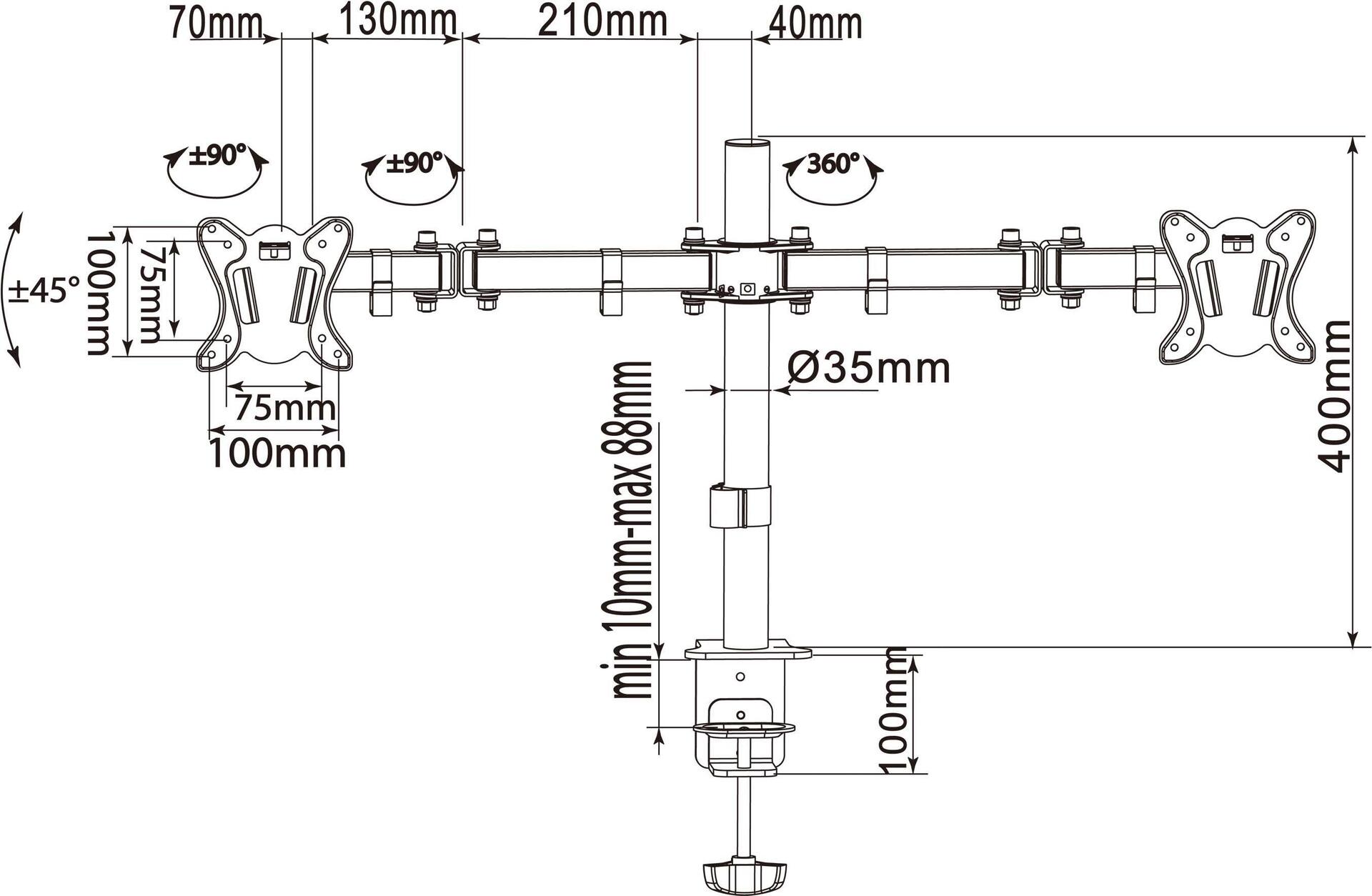 Equip Pro Articulating Dual Monitor Desk Mount Bracket Befestigungskit - Voll beweglich - für 2 LCD-Displays - Schwarz |