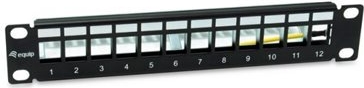Das Patch-Panel für die digitale Datenkommunikation ist mit seinen 12 Ports und abgeschirmten Keystone-Öffnungen für ein effizientes Netzwerkmanagement ausgelegt. Diese rackmontierbare Einheit besteht aus strapazierfähigem Stahl und gewährleistet eine zuverlässige Installation. Die mitgelieferte Stützstange erleichtert den Einbau in Standard-Racks bei einer Höhe von nur 1 Rack-Einheit. Dank der Snap-In-Installation lässt sich das Panel schnell und problemlos einrichten und eignet sich somit für organisierte Verkabelungslösungen in verschiedenen Umgebungen.