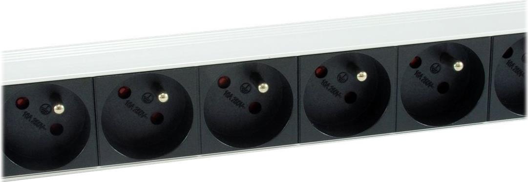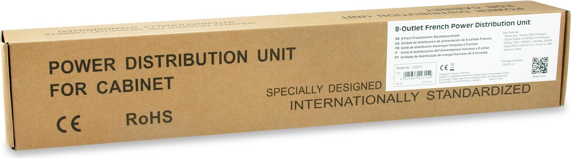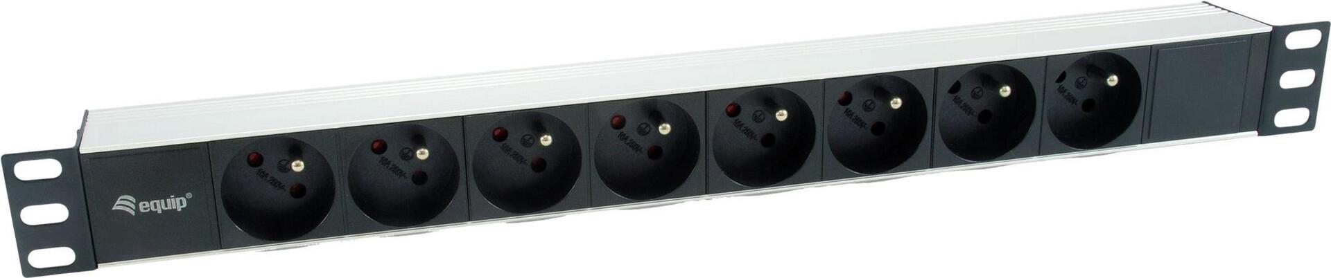 equip Pro - Stromverteilungseinheit (Rack - einbaufähig) - Wechselstrom 220-240 V - 3500 Watt - Eingabe, Eingang CEE 7/7 - Ausgangsanschlüsse: 8 (NF C61-314) - 1U - 48.3 cm (19") - 1.8 m Schnur - Frankreich - Schwarz, Silber