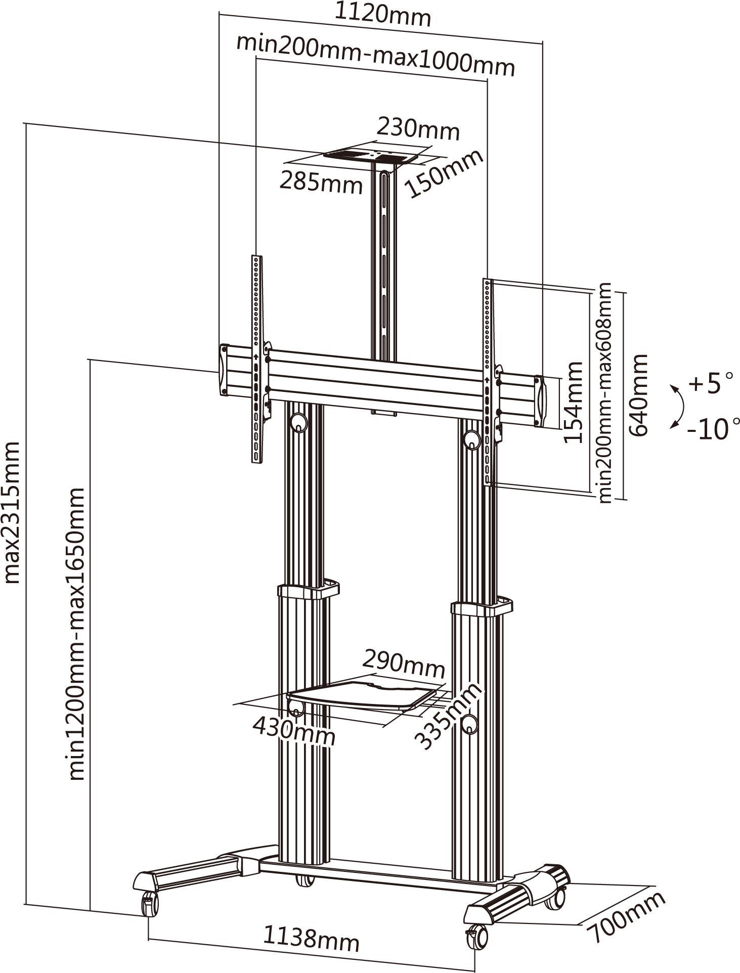 Equip Pro - Wagen - für LCD TV - Kunststoff, Aluminium, Stahl - Schwarz, Silber - Bildschirmgröße: 152.4-254 cm (60"-100")