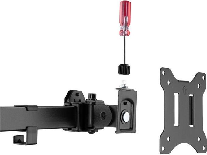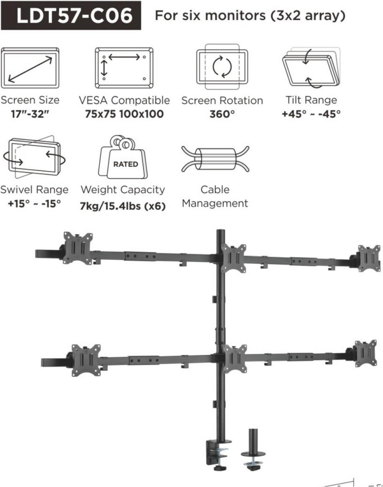 Die equip 650613 höhenverstellbare TV/LCD-Schreibtischhalterung ist ein kompaktes, aber robustes Produkt, das eine zuverlässige Installation Ihres TV-Monitors gewährleistet. Keine Löcher oder komplizierte Montage erforderlich, kann schnell montiert werden.Dieser TV-Bodenständer ist perfekt für Orte ohne Montagemöglichkeiten. Hergestellt aus solider Stahlkonstruktion und Sockel in Melaminlaminat-Holzoptik für Aufbewahrung und Ausstellung, drehbar, höhenverstellbar, organisierbar, einfach zu montieren, Kabelführung.
