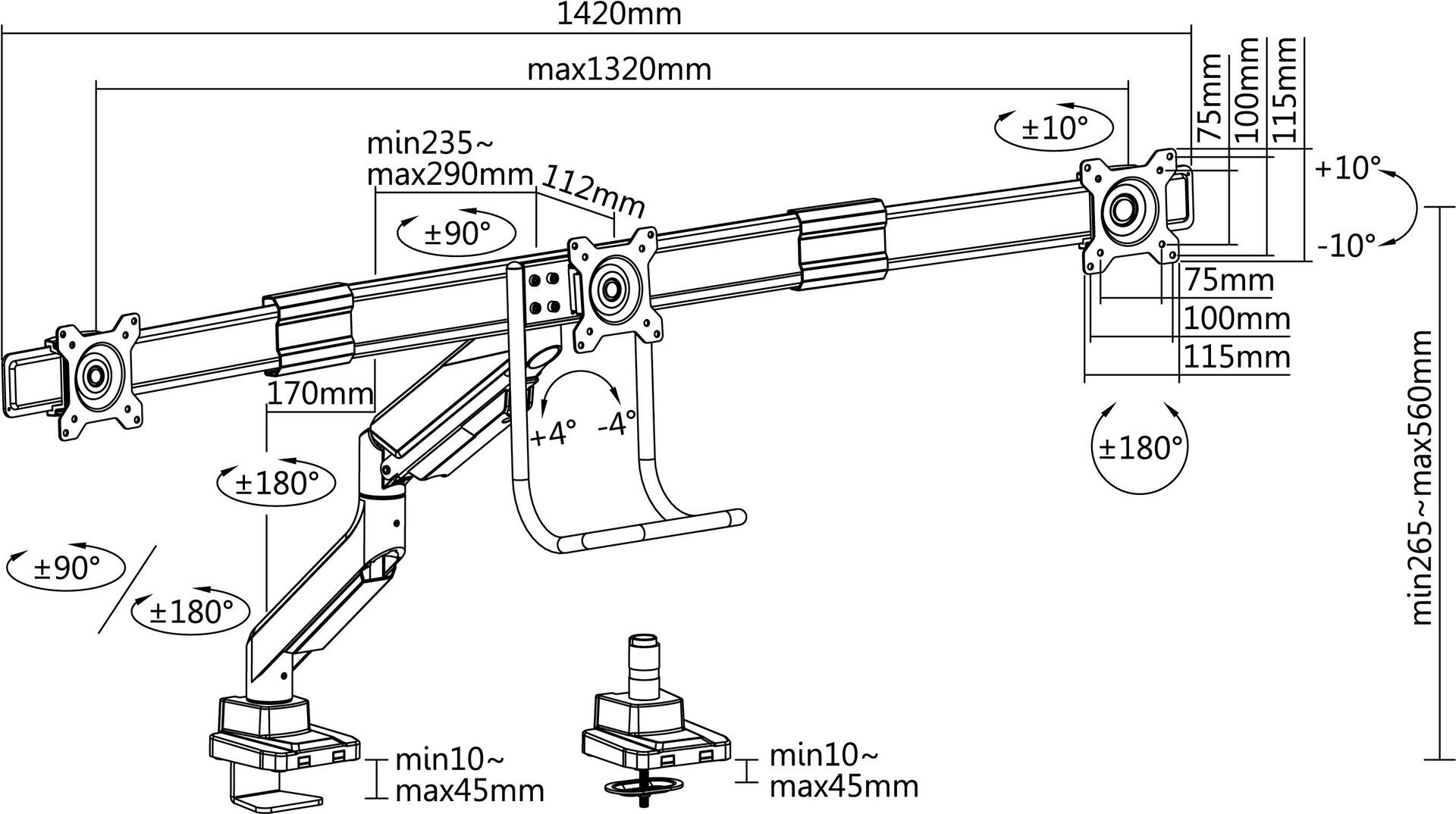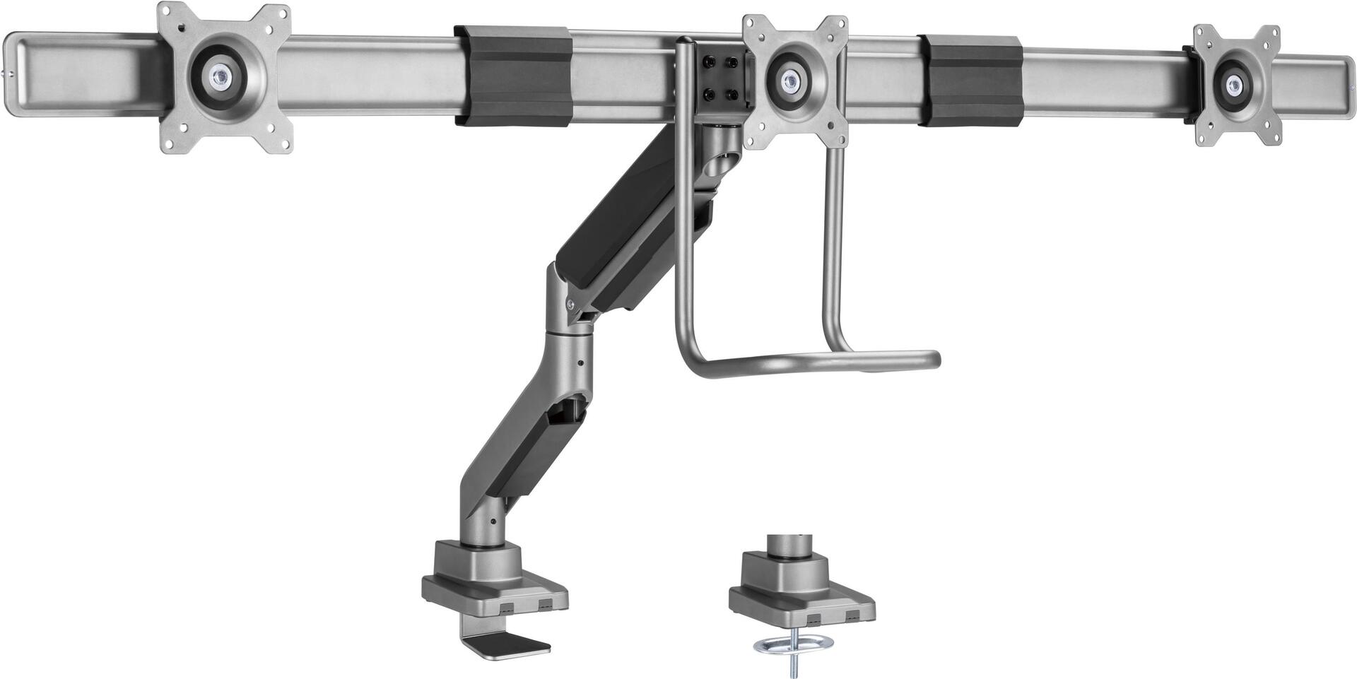 equip - Befestigungskit (Kabeldurchführungsklemme, Schrauben, Klemmhalterung) - Gasfeder - für 3 LCD-Displays - Curved LCD-Displays - Kunststoff, Aluminium, stainless steel - Silber - Bildschirmgröße: 43,2-68,6 cm (17"-27") - Tischmontage (650162)